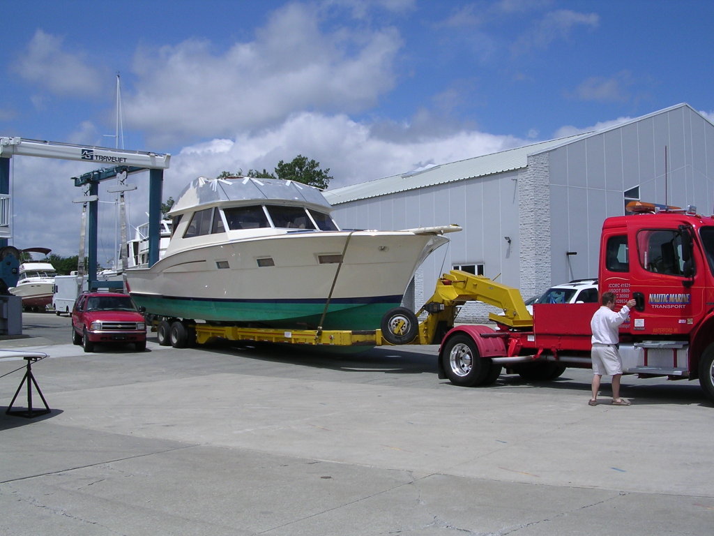 45' Commander Tournament Fisherman is hauled for major cosmetic upgrades. Great photos of Bill Thomas's daunting project. Featured June 12/13 2006
