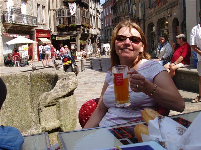 Heidi Pigeon, an Alan Jackson fan, taking a "5-oclock somewhere" break, Dinan, France. <a <a http://www.network54.com/Forum/424840/message/1154625289