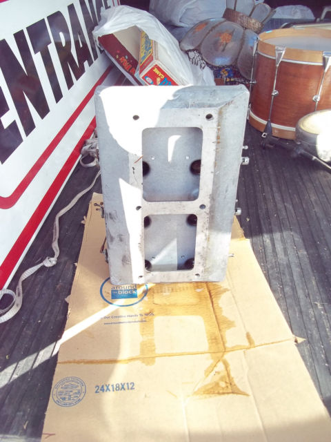 A Weiand 671 6x2 blower top plate. There are repros out there that don't fit too well from what I hear. Originals seem to run $500-1,000. A rare Weiand 8x2 top plate. Ending bid on this was somewhere north of $1,700.