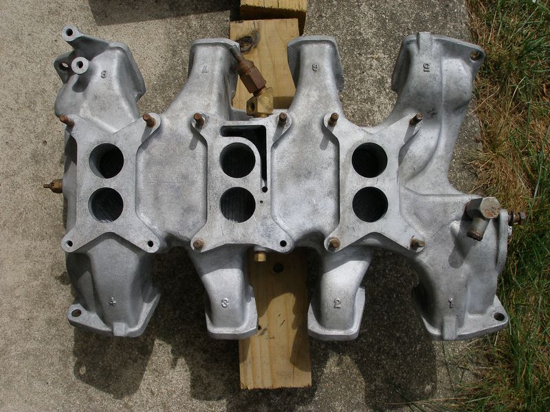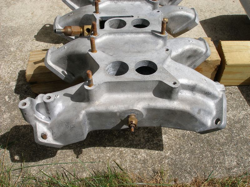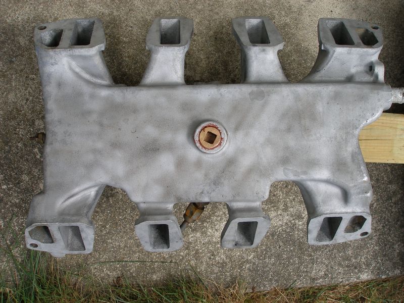 The intake looks pretty clean, although I still may media blast it again. There is some pitting on the water inlet for thermostat bypass, and the vacuum port for secondaries was plugged solid. I did manage to get the port cleaned out, but it took some time...