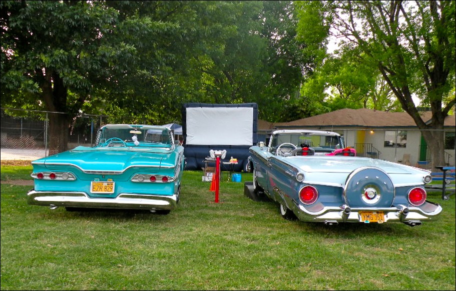 I like the drive-in cinema idea and your cars look stunning. I would probably like to have my pop corn in the retractable. Must have been a great fun experience for the kids and the parents too. Ride on.