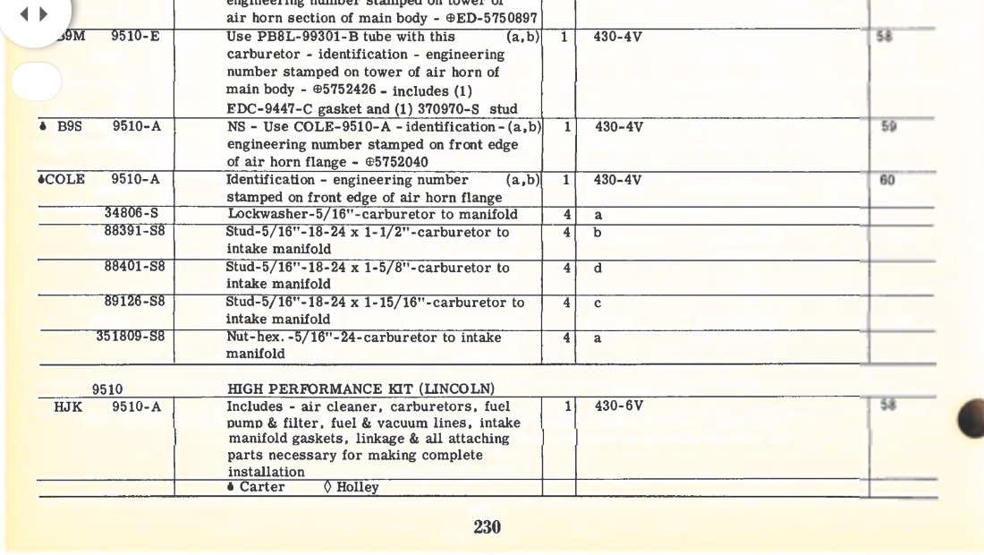 The second is for Lincoln, Continental and Mercury, dated January 1, 1958. The only listings I can find, that do not appear in the July 1, 1957 Lincoln Reference are for possibly the SM intake manifold and carburetors.
