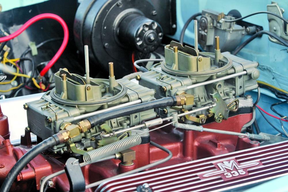 In 1957, Hot Rod reported that the hi-po engine was destined to be a special order for the Turnpike Cruiser, but that didn't happen. Instead, Mercury pulled Monterey bodies-in-white from the line at Los Angeles Assembly in Pico Rivera and sent them 20 miles south to Stroppe in Long Beach. They were mostly stripper two-door sedans, their best compromise between weight and stiffness--although a handful of other bodies, including a Turnpike Cruiser, have turned up. With enough initiative, you could order the intake and twin Holley setup as a kit over the counter for your base single-four barrel 368, and a few hot rodders did, but Stroppe's shop built the M-335 engine with a high-lift Isky cam (.468-inch, intake and exhaust), mechanical lifters, heavy-duty springs, high-flow exhaust and other tweaks.