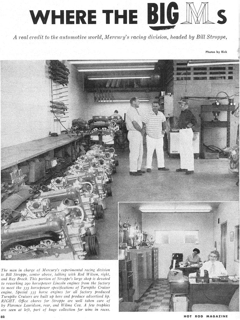 Here's some photos of Stroppe's shop where the M335s were being built. Mercury turnpike cruiser engines in the foreground, looks like a Lincoln engine with large air cleaner in the background and a M335 dual quad engine beyond that.