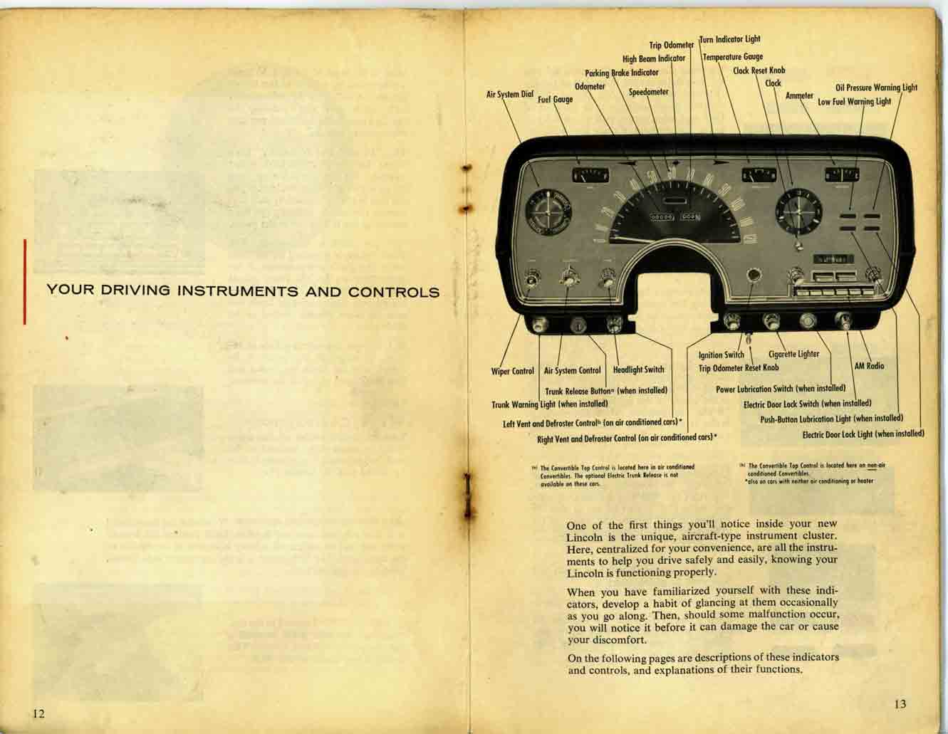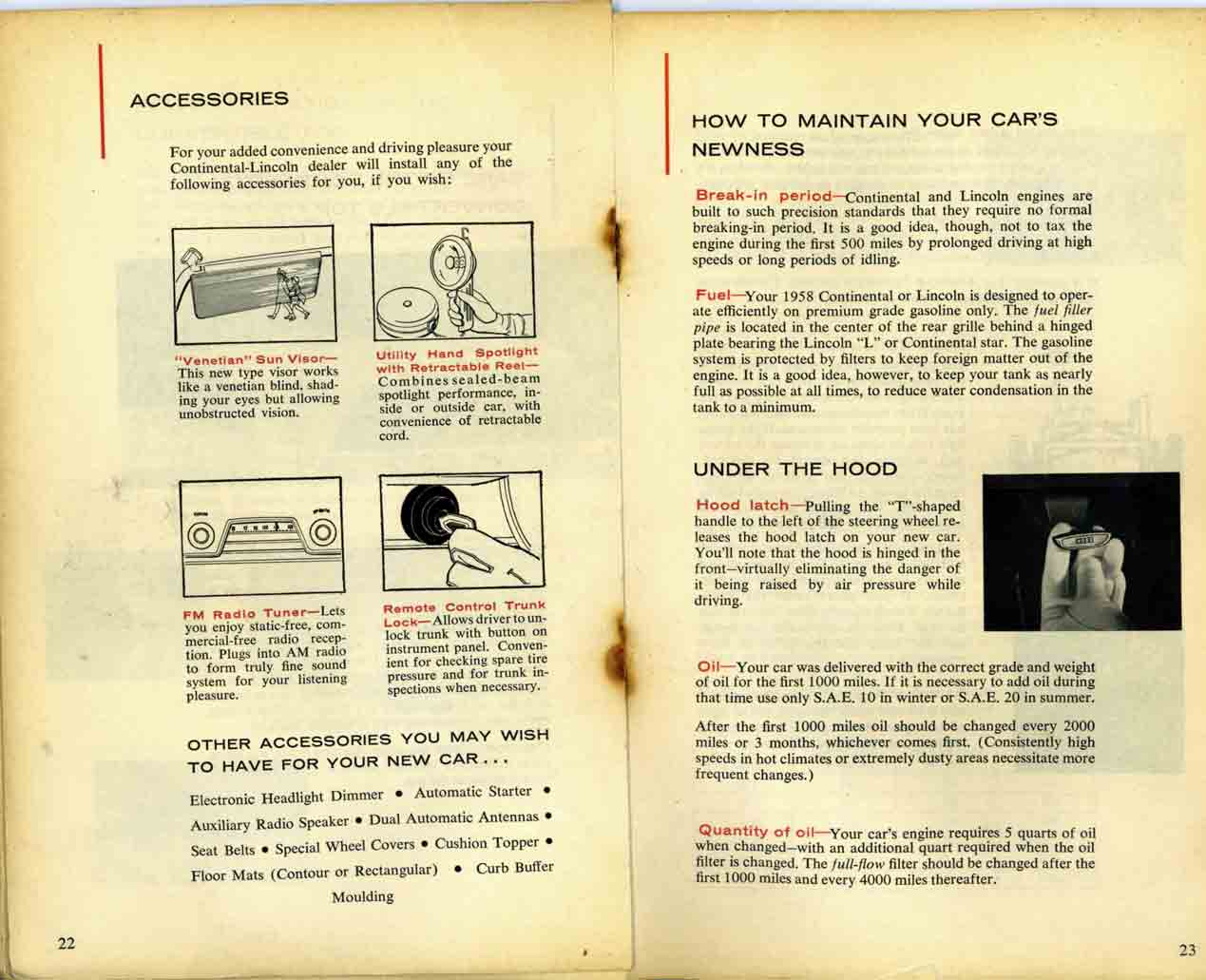 This driver's manual belongs to the rose colored Lincoln pictured in the banner of this site. Unfortunately my scanner's driver is very buggy and creates scans with different settings regardless how I set it up. The booklet is mildly soaked with oil and has probably tarnished the scans a bit.