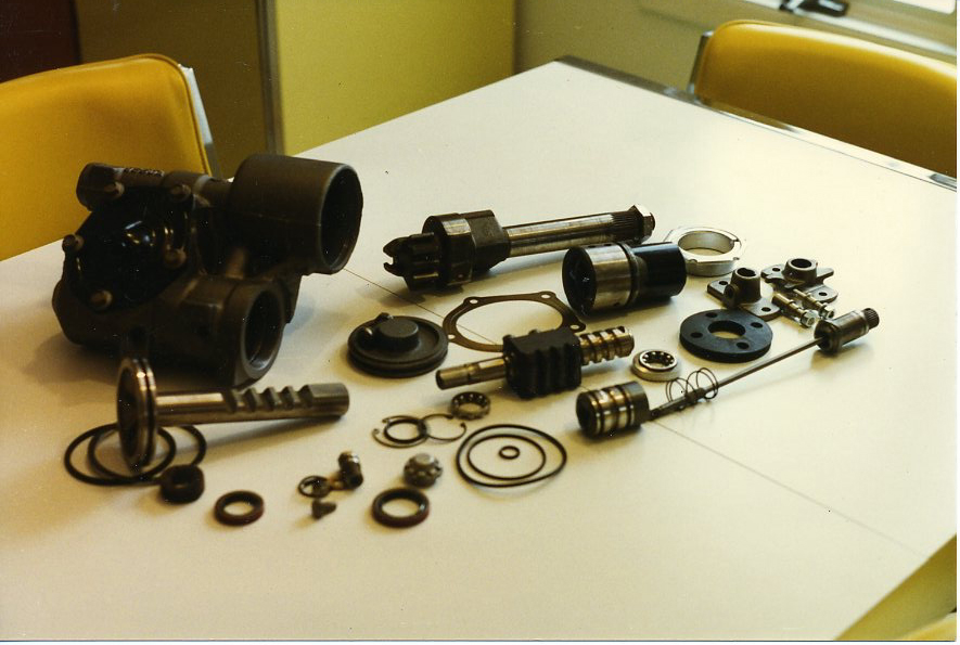 Look at the piston at the far right ...the red paint is highlighting a crack in the piston! Naturally I discovered this problem after I re-installed the unit and had the same problem. I can whip this steering box in and out in record time...! So don't let this happen to you.