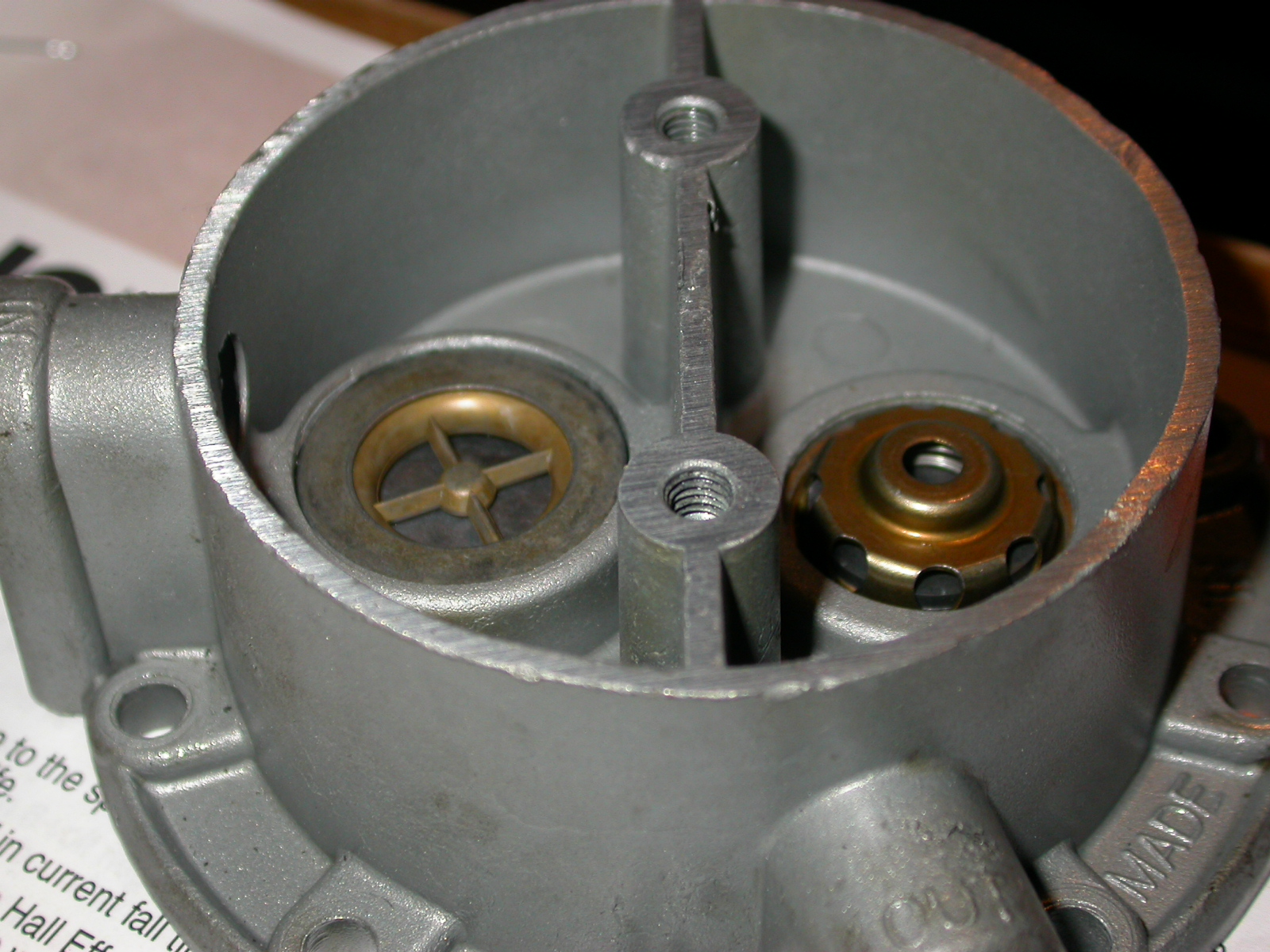 In this picture there are more shavings. Also the casting ridges are sanded off causing the parts not to seal. The ridges help the rubber diaphragms to seal and allow a little forgiveness if the castings are not exactly flush.