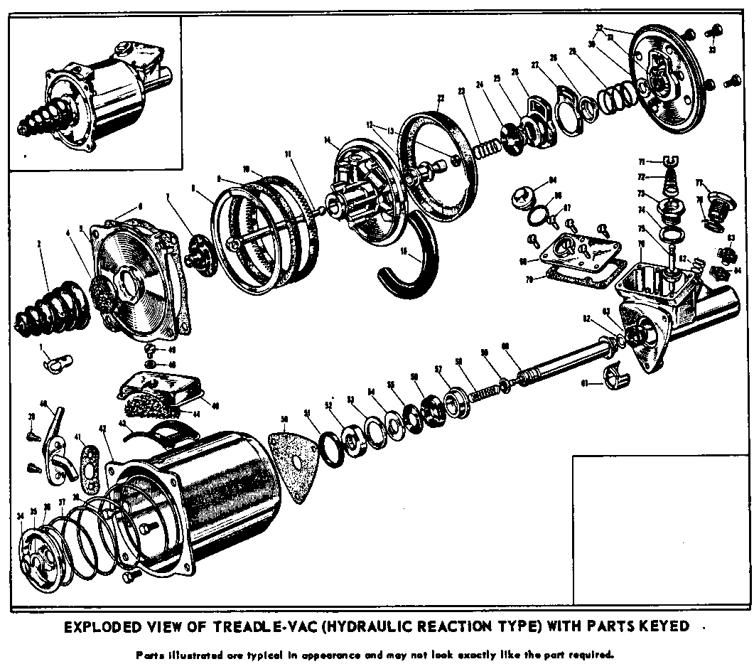 The Disc Reaction type of Treadle-Vac was used on 1959 and 1960 Lincoln, 1959 Edsel, late 1959 Oldsmobile (O-10) and 1959 American Motors (N-5).