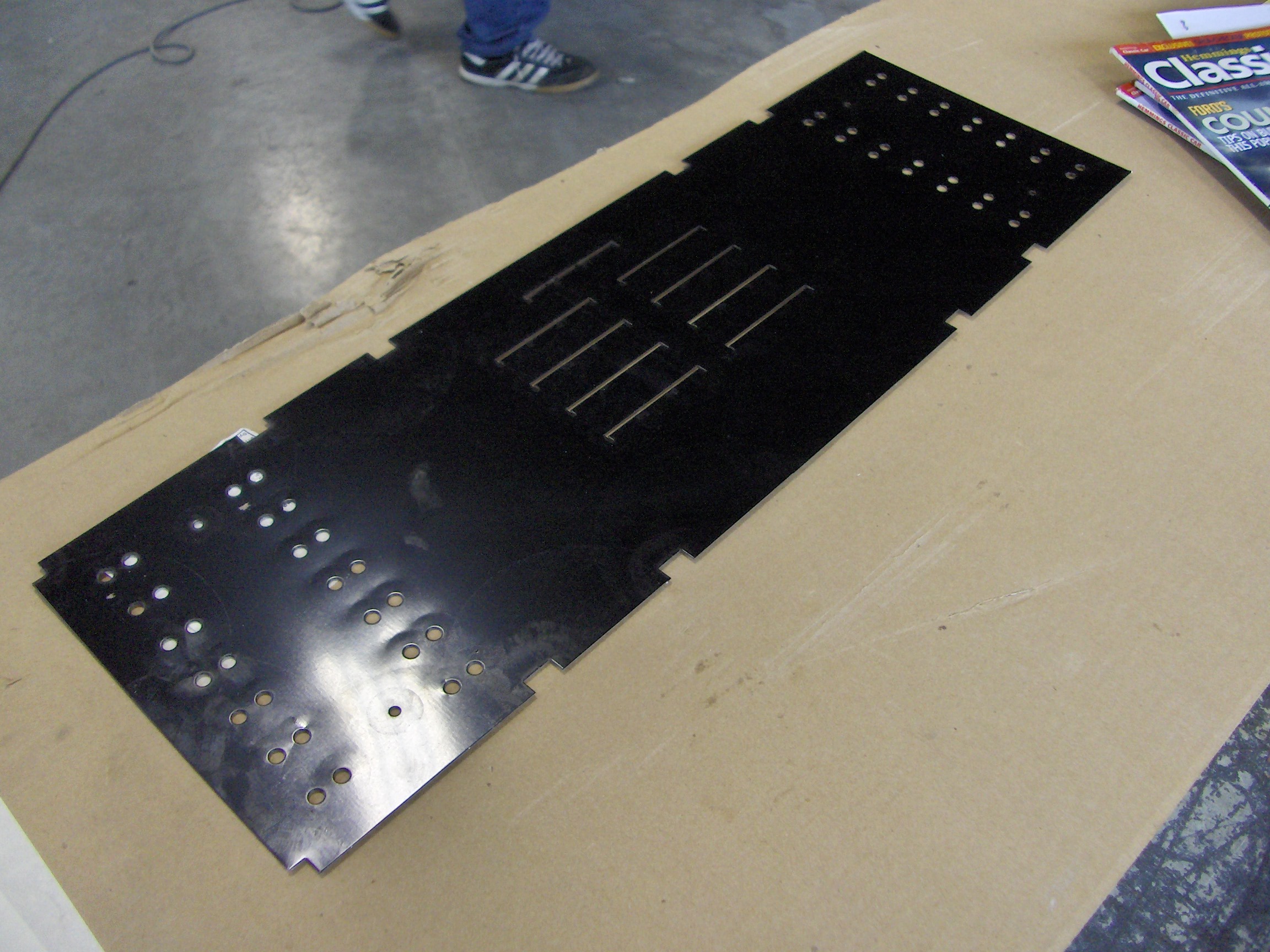Here is the Aluminum FM chassis in auto-cad. Its a three part piece and has two steel pedestals to mount it to the transmission hump.