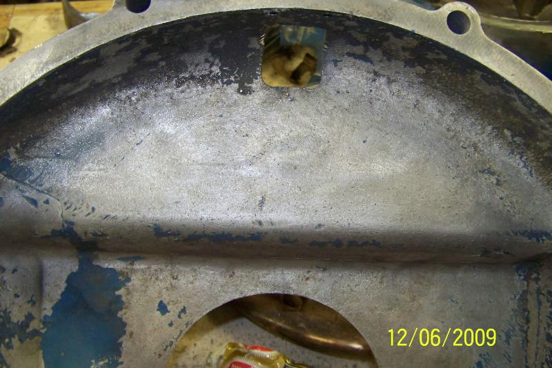 This is what the front (flywheel) cover looked like at the start. Sand, sand, then sand some more. fussy, time consuming work, but it will look great when it's done.