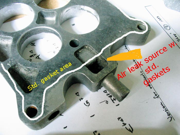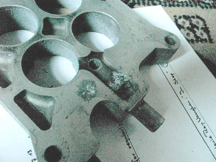 Went to my garage and took a look on a few left overs. My orig. 62 T-Bird spacer (see pic) only routes to the secondaries. I had a serious air leak when I purchased the car 20 years ago. I replaced the carburater gasket several times w/o any change until I realized that the spacer was routed in a way that it makes the usage of an original curved Ford gasket mandatory. You usually don't look under a carb base.KULTULZ wrote:A 4V spacer that draws from the rear usually has channels in the casting that will ensure the signal is sourced from the primaries.