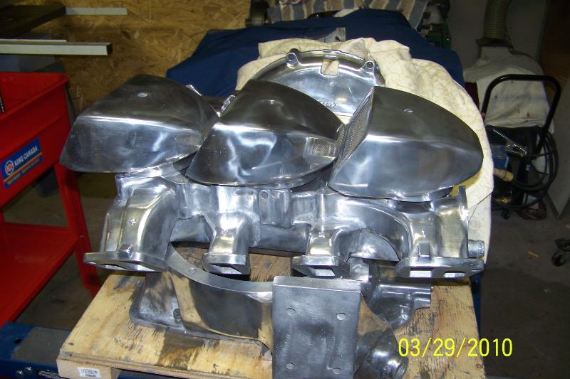 Here are my Nicson marine flame arrestors, and the intake and some other stuff that is/has/continues to be polished :mrgreen: