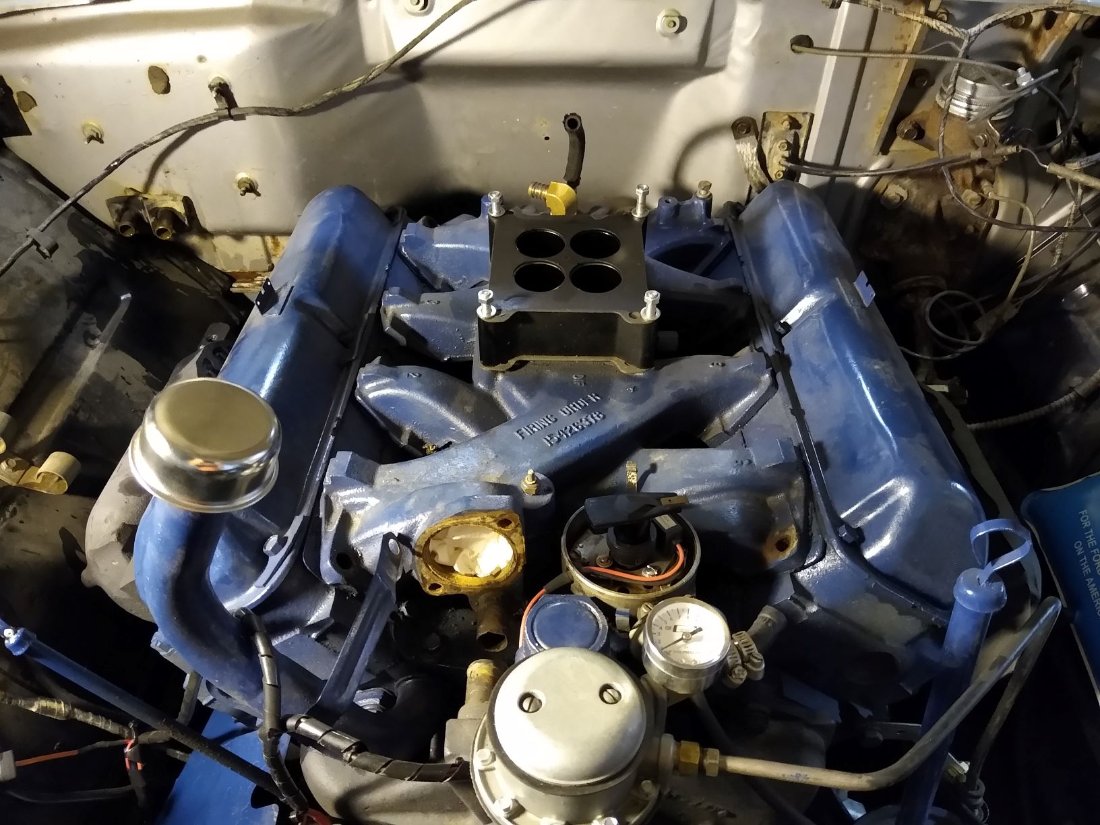 Your driving comparision with the tall and short manifolds is appreciated. Especially the hold down information. I've never had open spacers work well down low either on an FE. There should be some information here about the 390/428 GT/CJ camshaft re-grind on the MEL camshaft. I'll be out of state for a year but you are really tempting me to take the 65 430 with me and tinker with it in my spare time.