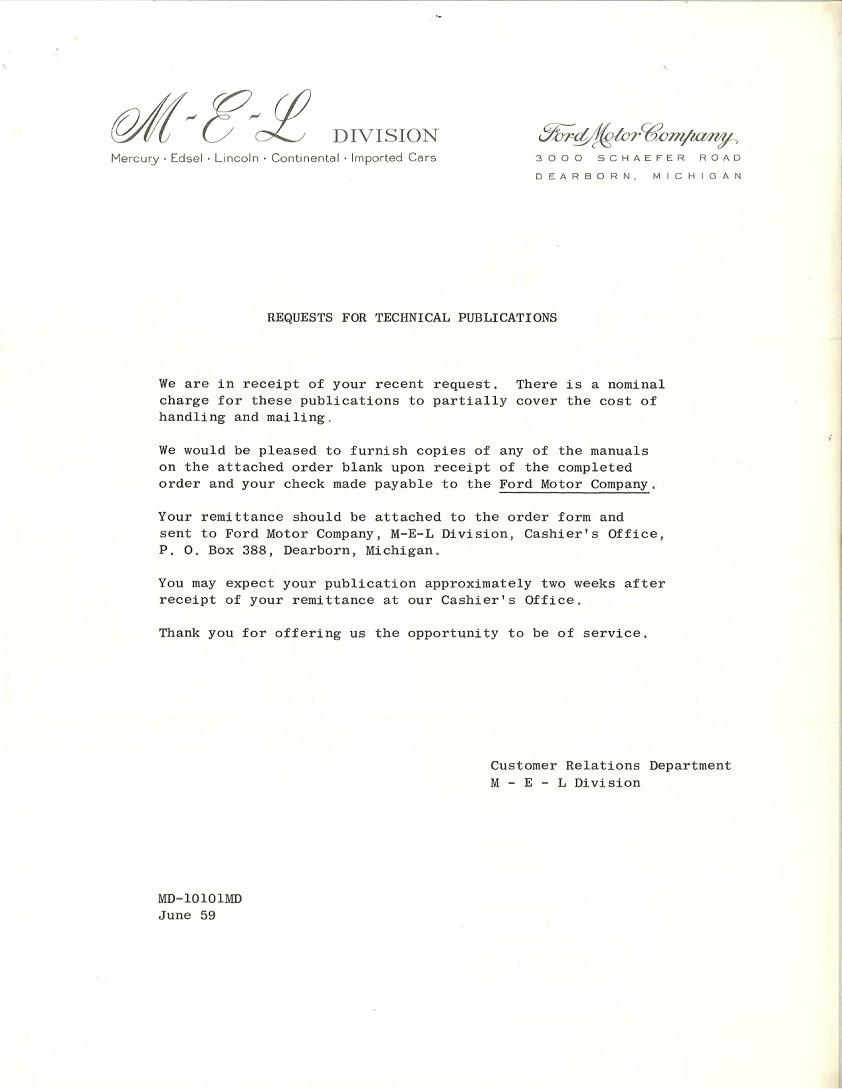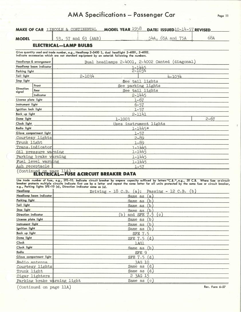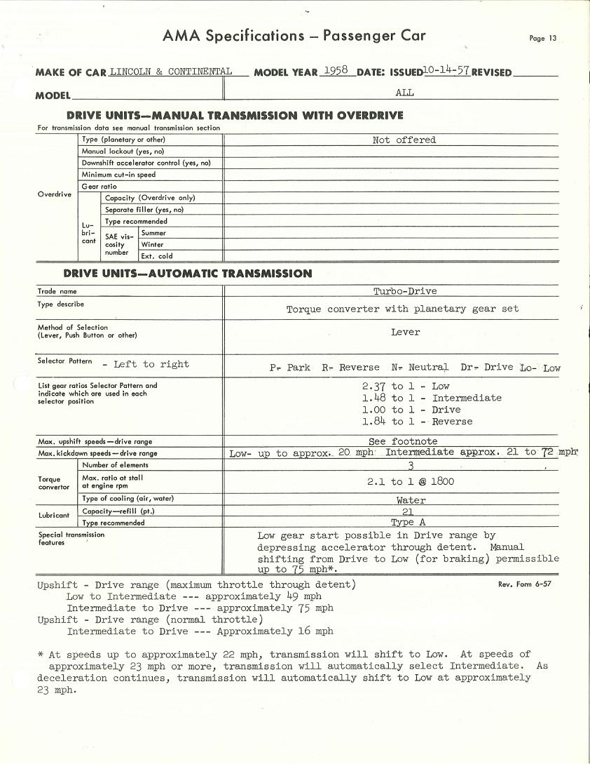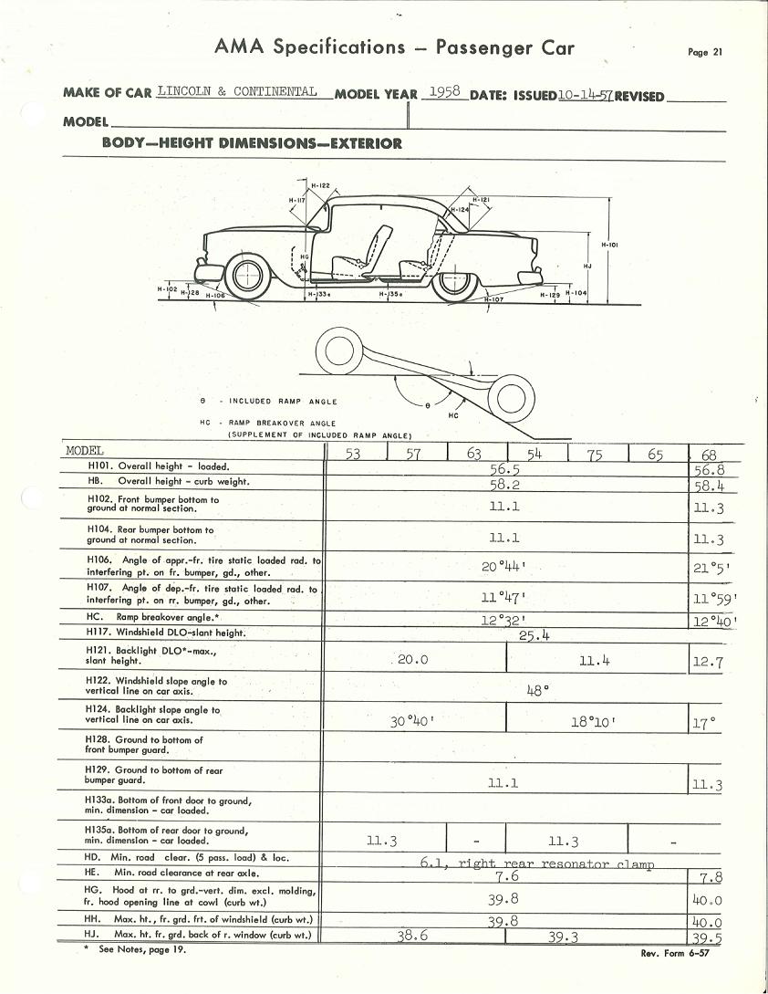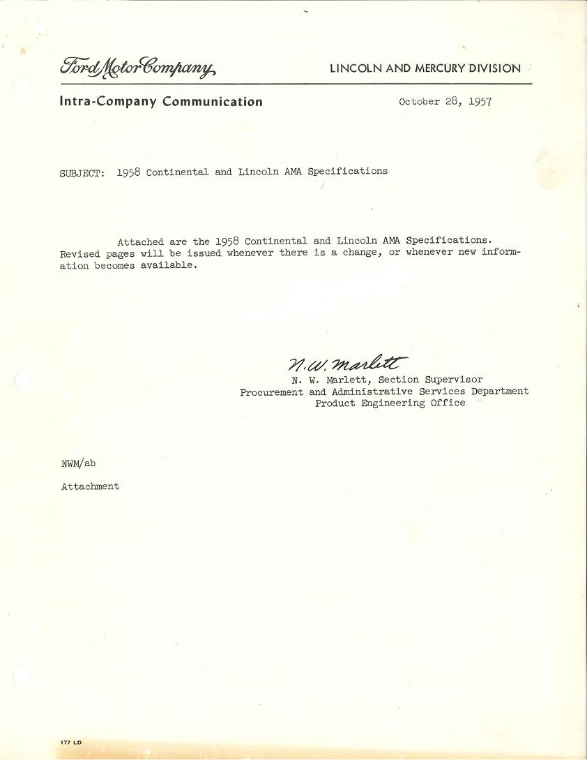 Re: 1958 Lincoln & Continental AMA Specifications (10-14-57)