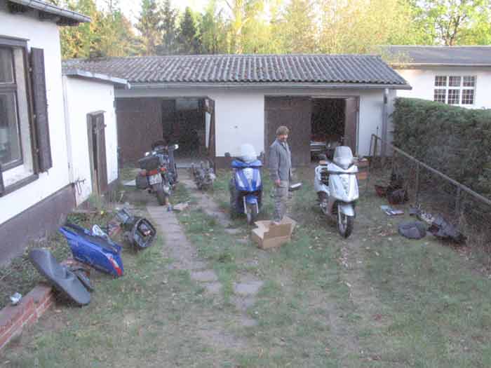 Below is my buddy who helped me swapping the engine. Be warned if you ever plan s.th. similar. You need to be two perons unless you have a professional scooter stand.