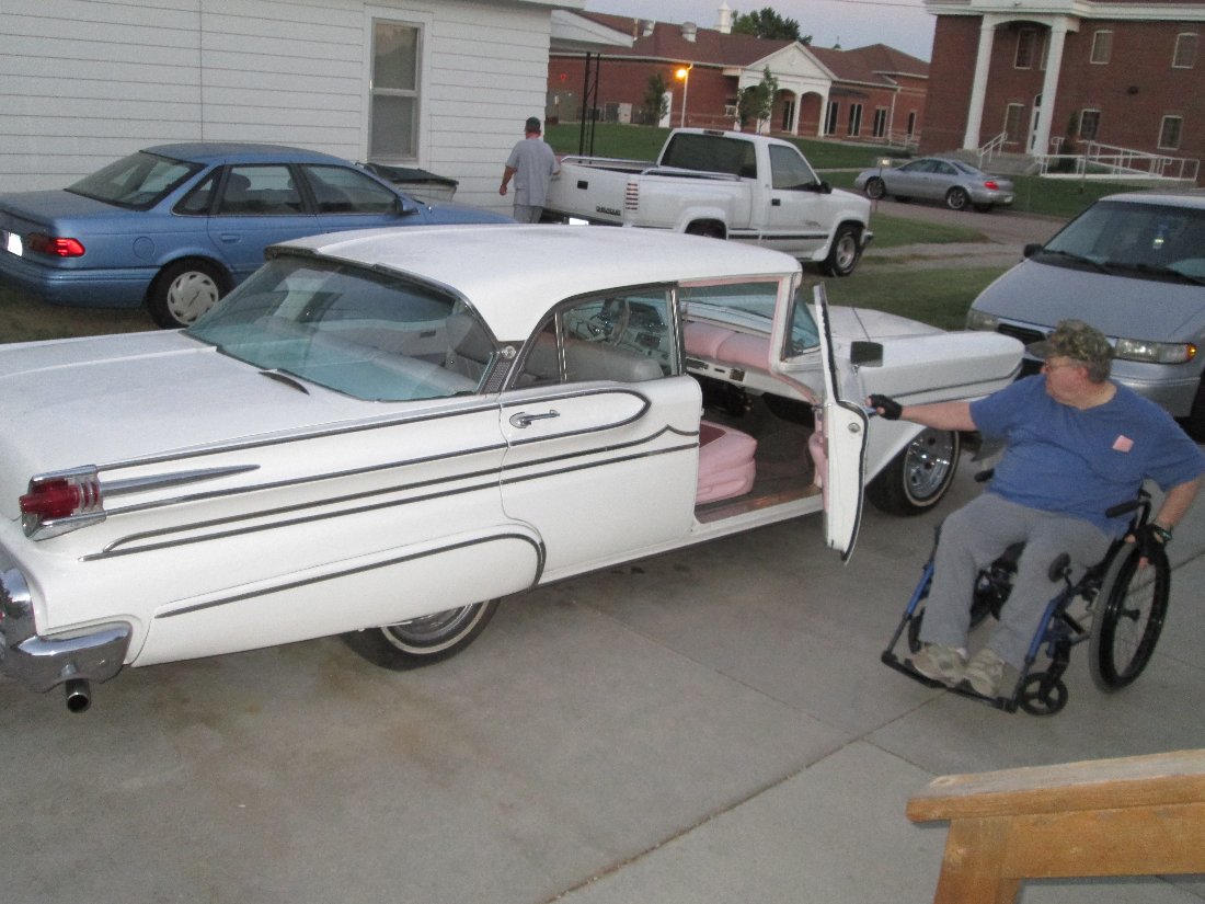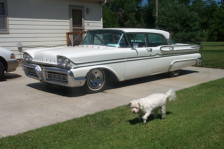 Marilyn is our 1958 Mercury Montclair that we picked up about 5 years ago. We call her Marilyn because the fellow that started her build wanted to make a car that he thought Marilyn Monroe would have driven, thus the pink and mauve interior. I had firmly decided to replace the interior when she was delivered but once you see the car in person the colors fit and tend to grow on you. She has what I believe to be the 383 Modified engine and a Merc-O-Matic When we decided to get back into classic cars we wanted something to take our 80+ year old Mothers out to supper in and yet be able to enter into a few shows, that is why we went looking for a 4 dr car. Little did we know just how rare this year of Mercury was and how hard to find parts for. She has had some 50's type customizing done, lowered, some trim badges removed and a set of cruiser skirts. Since delivery we have actually raised the rear end up an inch as it would constantly drag in and out of every driveway. We also had her pinstriped, in colors matching the interior, at the 2017 KKOA Lead Sled Nationals in Salina, Ks. which is where we are from. The photos are from the day of delivery and a few of the pinstriping as well. I have a few questions about an engine problem we are having but will ask them later. Thanks for letting us join in this very special group.