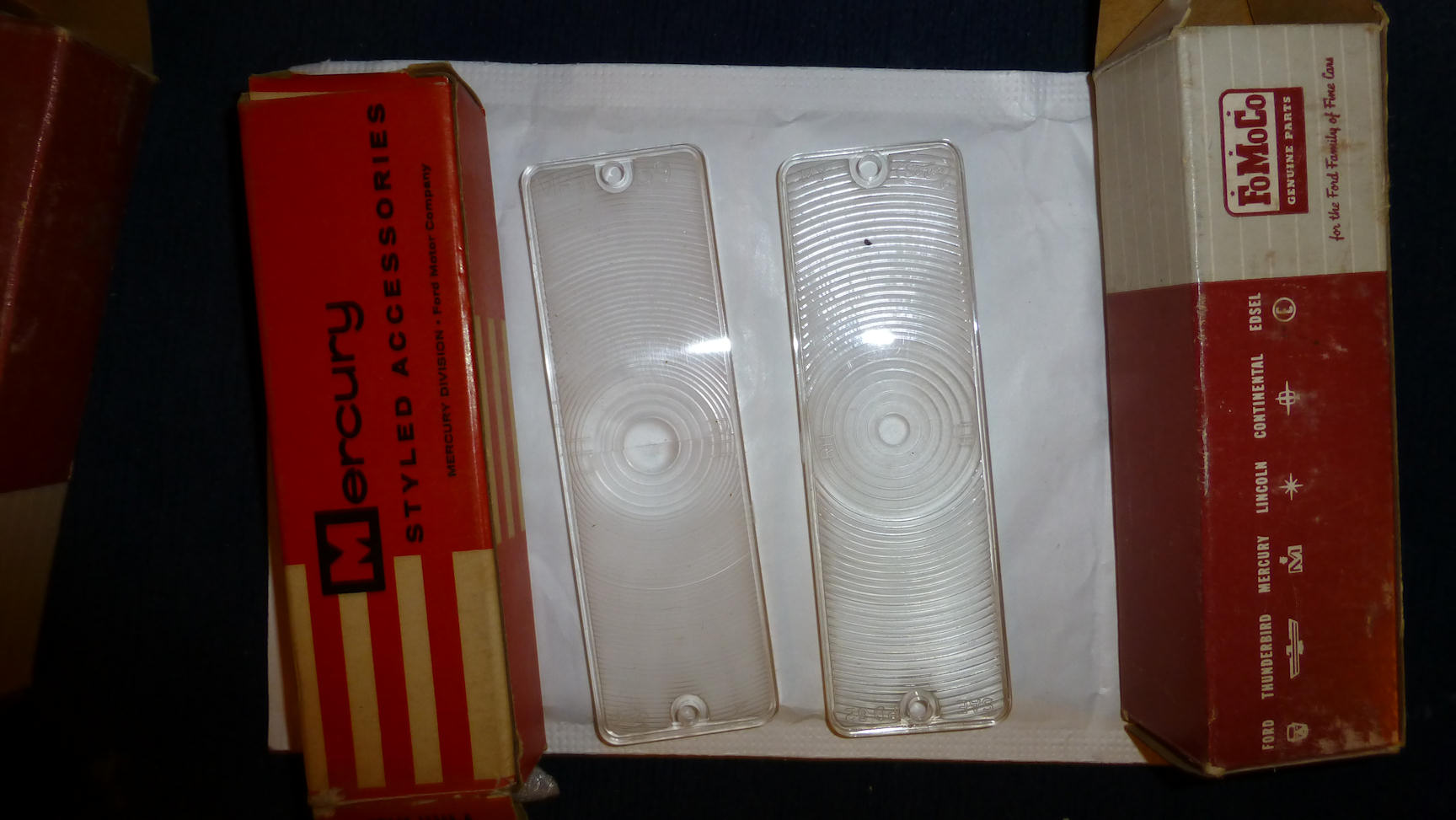 Regarding the parking light lens, are you aware of that there are 2 versions, the one with 59 marking and the later with 62 marking on the lens. Those with 59 on them are getting pretty hard to find, but I might have a set I can let go. (I just need to check that I have a set for my car first) I also have one extra set of the 62 version if you prefer them.