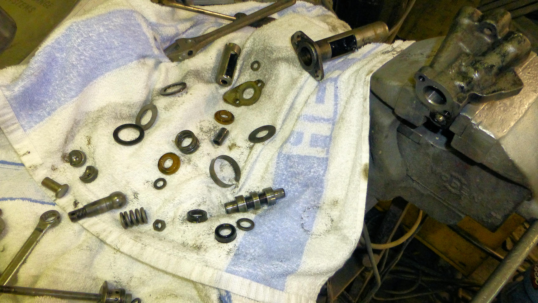 After a good cleaning and inspection I laid everything out on the blanket and replaced the old seals and parts with new ones. Now its ready to be put back together. the seals for the piston might be a little tricky, but it all came back together nicely.