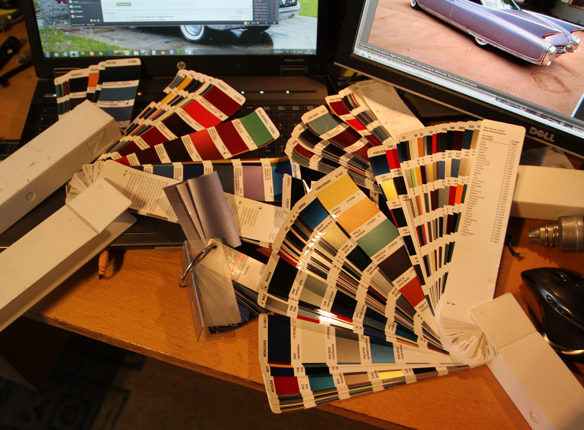 . After looking through thousands of different color chips I finally came down to a few that I wanted to test spray, but none of them were a perfect hit, so then I had to mix colors myself, test spray, adjust the mix and after doing this over a few times I finally have the color right.