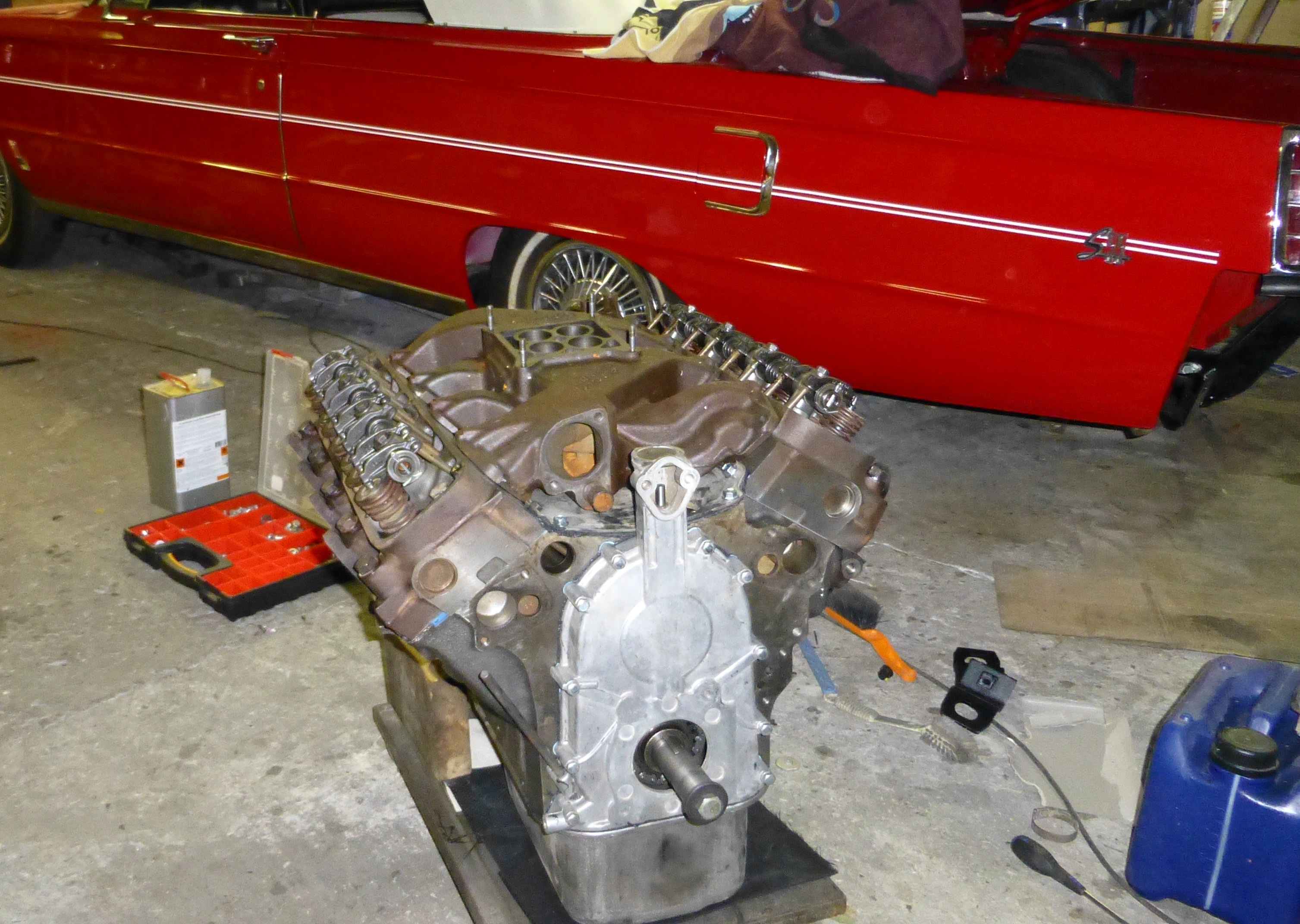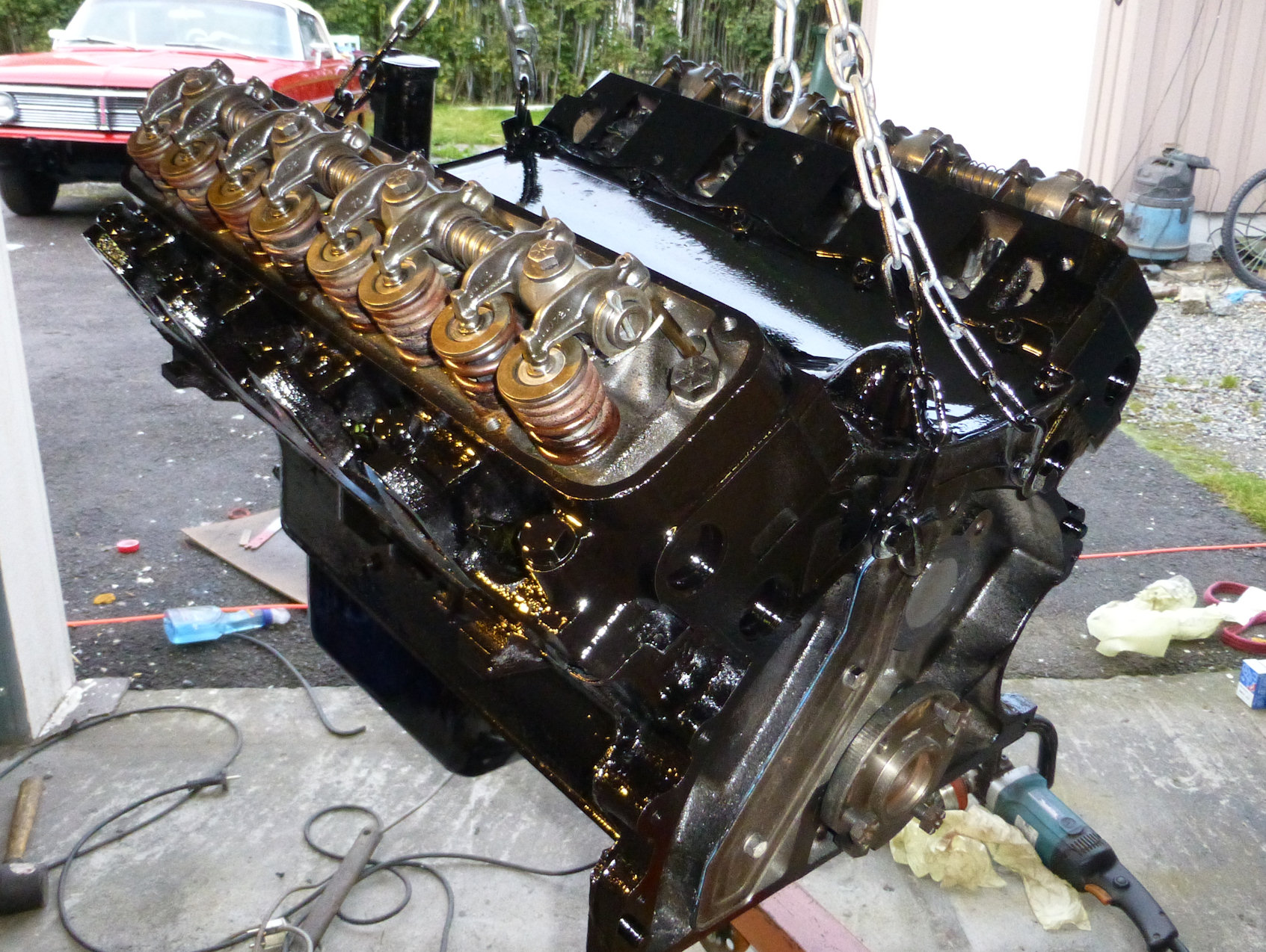 It sure has been a long pause since my last post about my 60 Mercury restoration. Anyway, that does not mean that the nothing is going on here. After waiting for a long time for my engine to come back from the machine show, I finally got it back last fall. So at least I got it assembled and painted before I once again had to pause the project for a long time. Here are some pictures.