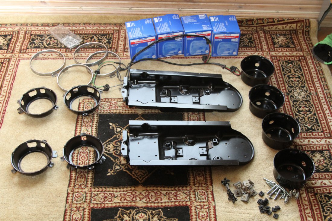 Small pieces comes together.... Headlight brackets and holders were taken totally aparts, painted, stainless were polished and screws and small parts restored before it all went back together with brand new lamps.
