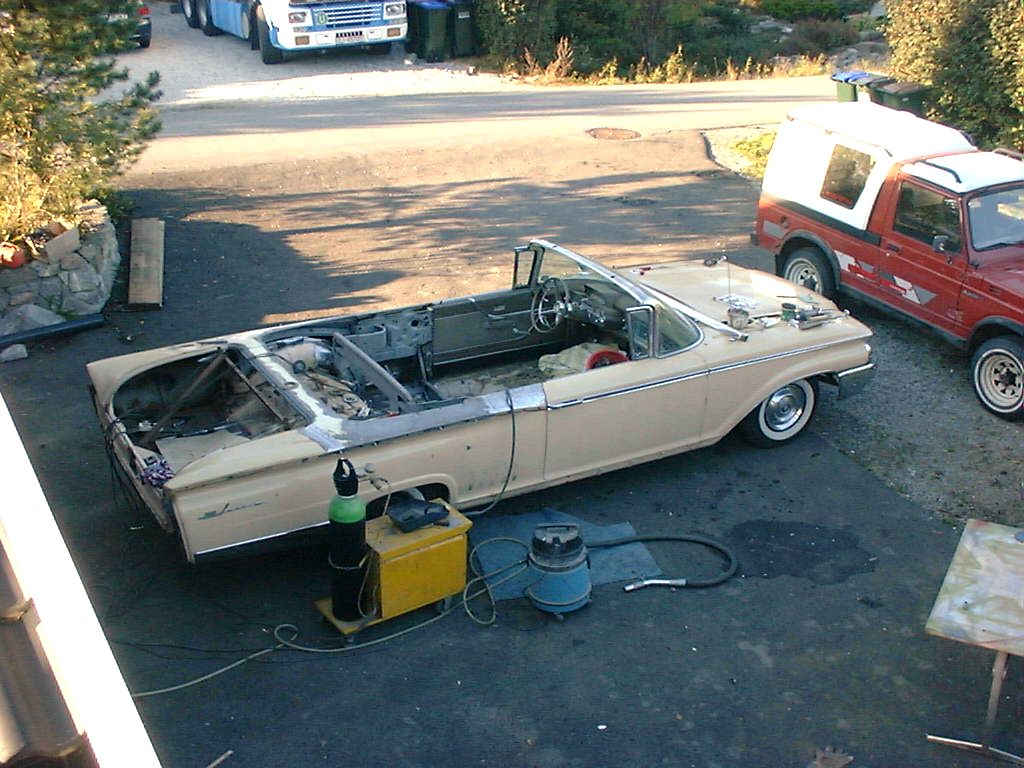 Back in 2007 I needed to free up some space for other projects and sold the 59. When I bought the 59 I was actually looking for a 60 Park Lane convertible to restore, so in 2002 I found one for sale in Michigan for $2000. Unfortunately that car was terrible rusty as well, (what could I expect for that kind of money?) but since I also had a much better 60 Park Lane 2d ht I decided to go for it and make one car out of both. OK, here are a few pictures of what I managed to do in the summer of 2002.