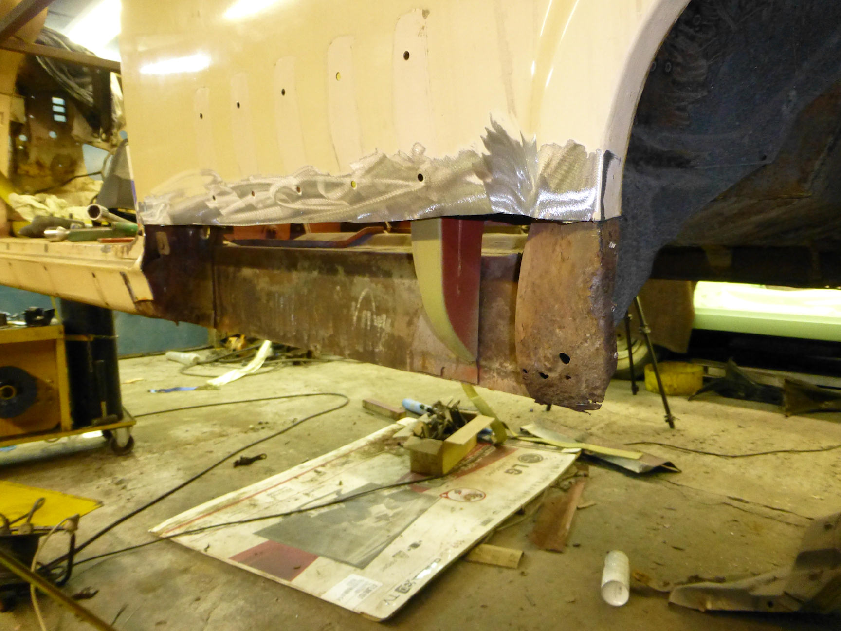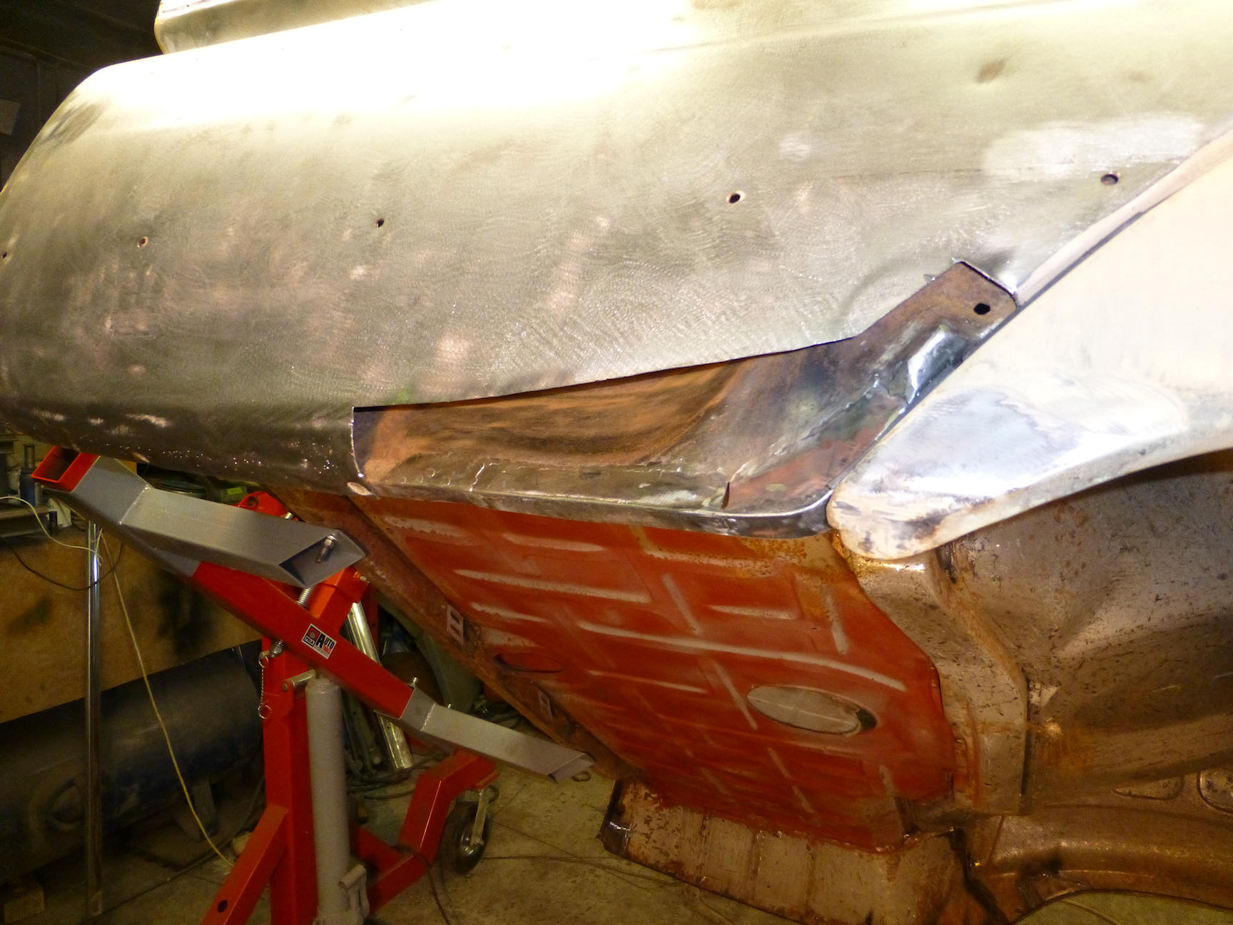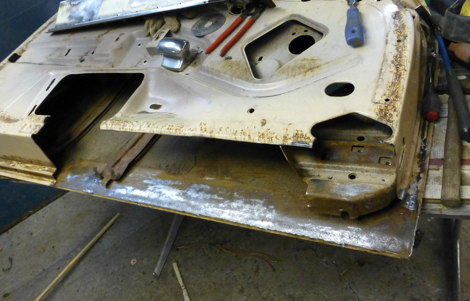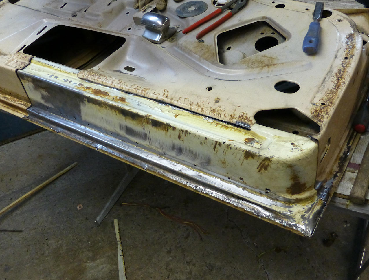 My hardtop is becoming a convertible. All the convertible parts had been removed from the rusty convertible by drilling out the factory spot welds and then transplanted into the hardtop body so it would be near impossible to see that this car body was a hardtop. Some people would prefer to take the good parts from the hat parts car and transplant them over to the convertible, but in this case I think that would have made a not so good result in the end.
