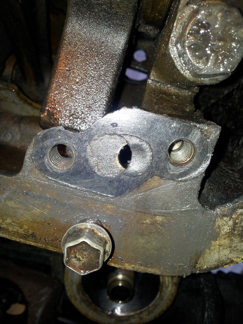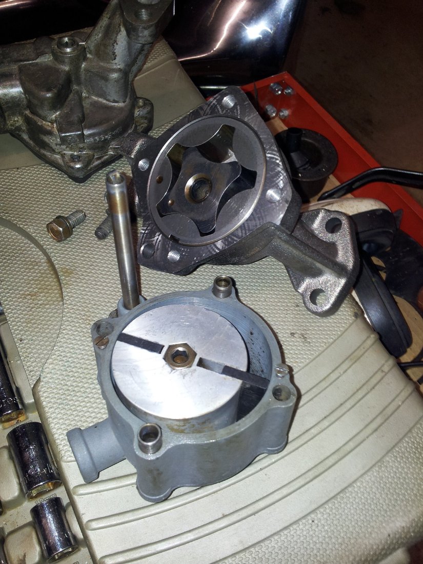Almost 1.5'' of sludge in the valve train, under the valley pan etc. I also found that someone had replaced the oil pump gasket and aligned it very poorly with the oil feed gallery, blocking 40% of the passage.