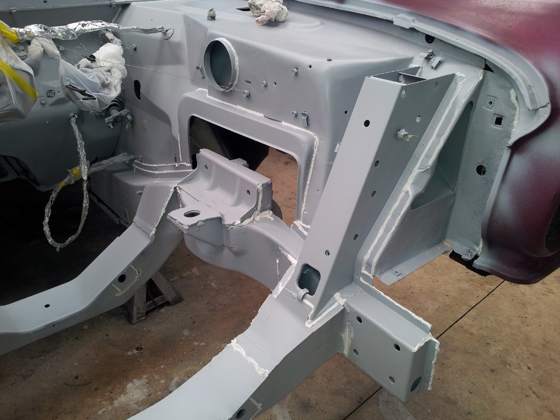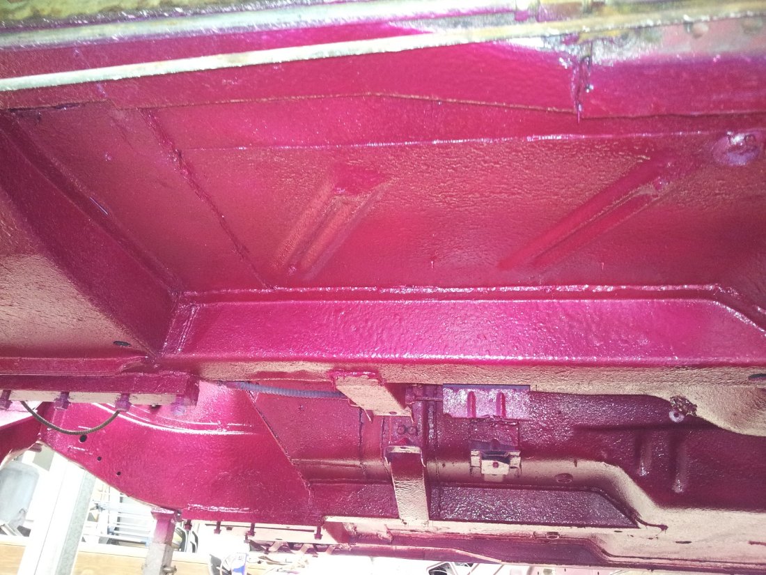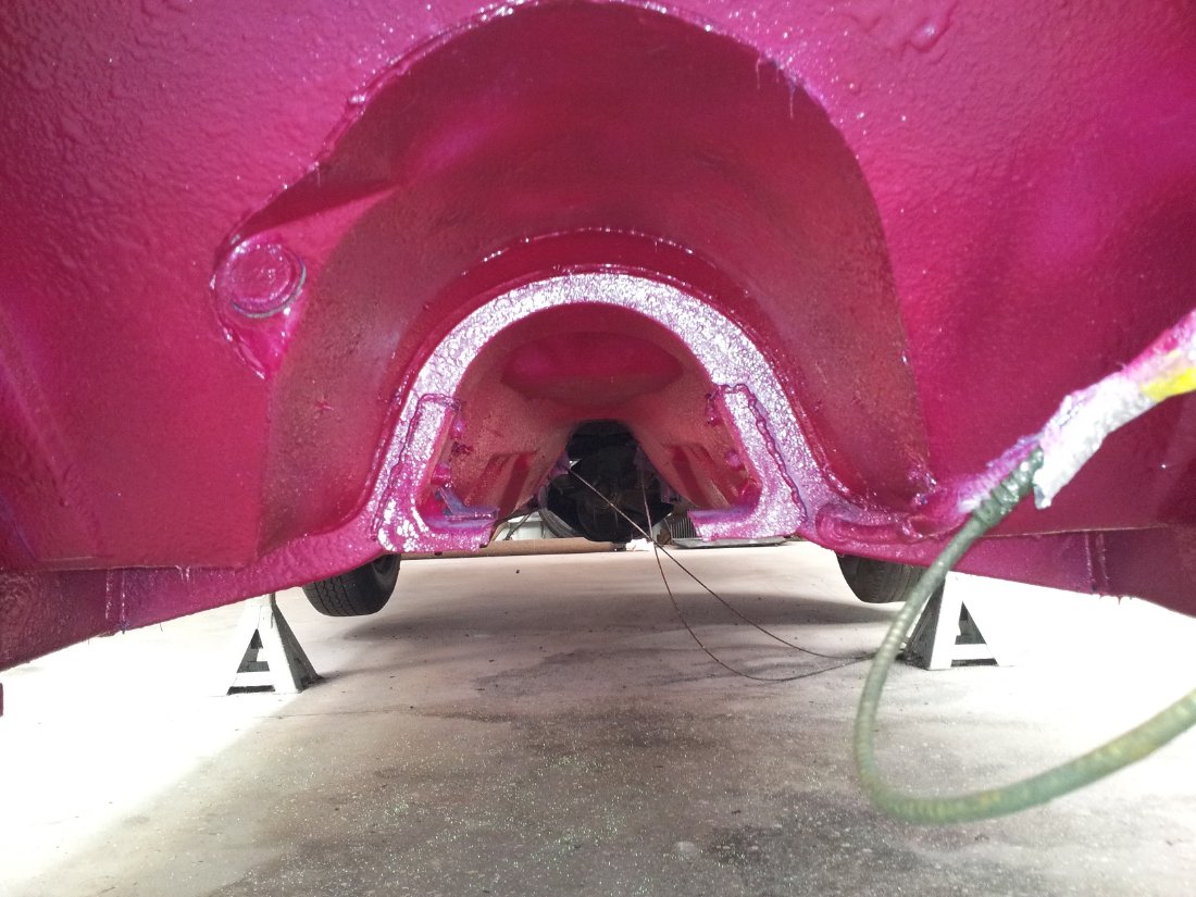 Undercarriage after Hours of scrapping, cleaning, Phosphoric, acid, primer, seam seal, paint