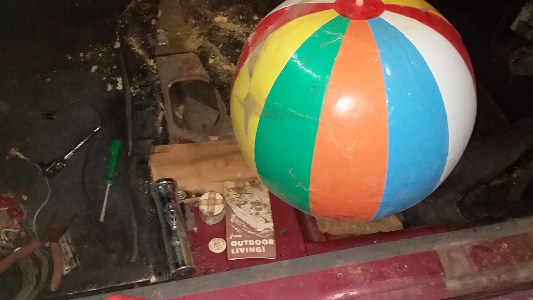 Removing the base of the front seat, found some items hidden in the lower body cavities.