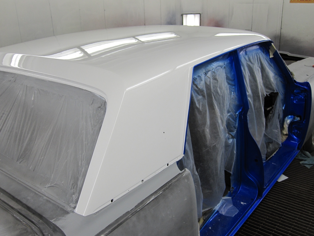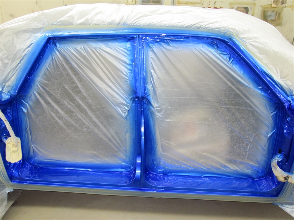 Last week the paint started on the door jambs and back of the doors, then the roof was laid out.