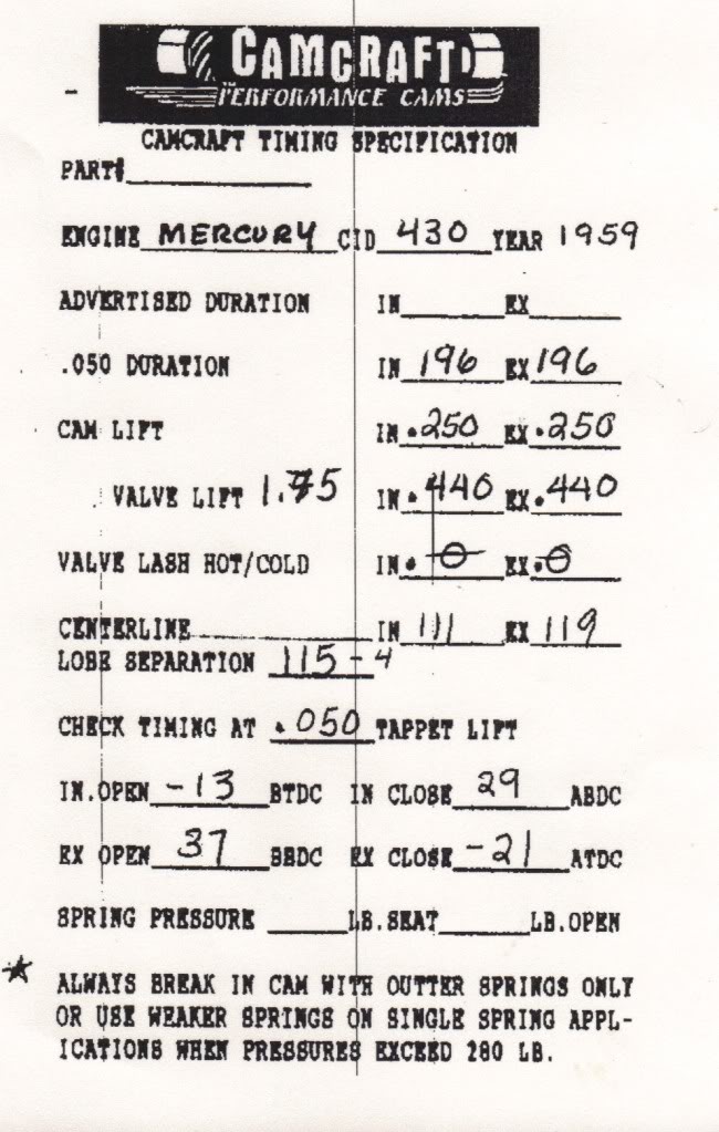 It's a sweet smooth idling cam that will give you a hard time to tell your engine from running or not. It looks very similar to my T-Bird's stock cam. Together w. the stock Autolite (Fire cracker) the engine is almost idling w/o a sound. Very convenient to the passenger. In city traffic situation, I more than once ran into restarting the engine while it was already running. ;)