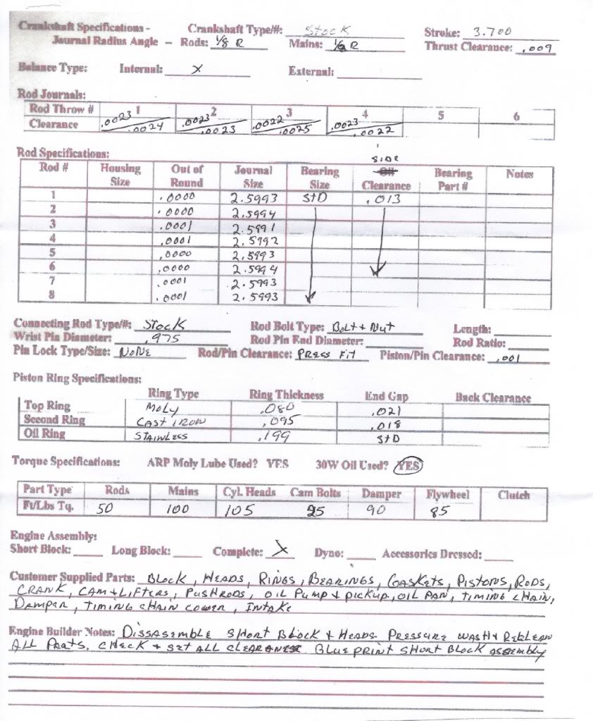 Here's where we're at. The engine has been put back together for the second time. While the compression came out good the hp results were not what I was expecting. On this post I am attaching the cam, piston, engine spec's, and some photos. The next post will have the dyno results and more photo's.