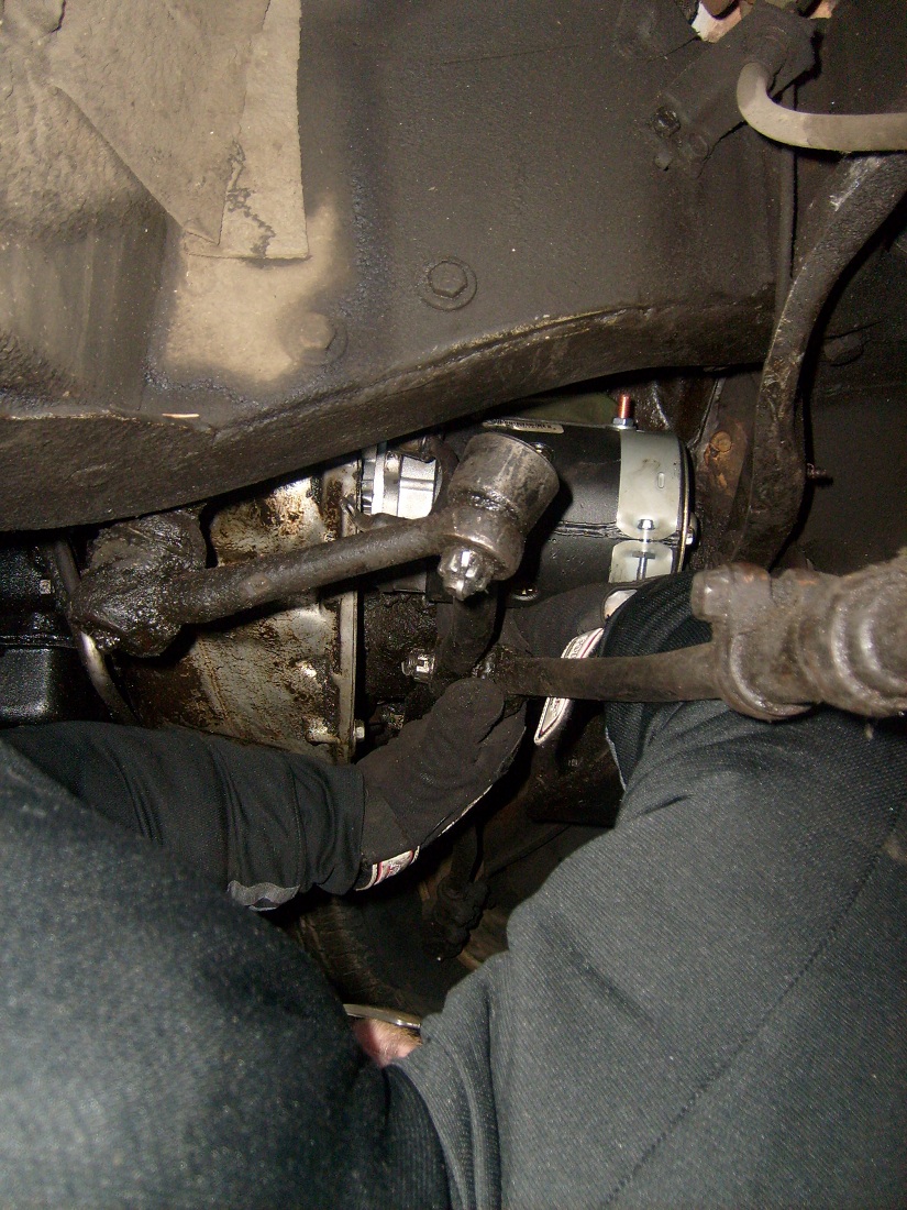 After trying to start her up on the first day, we eventually had to pull the starter to find that a pin was loose. Replaced the starter and put it in today. Not starting yet, but the motors turning. Next step, we'll check to see if the coil is sending power to the plugs. Bare with me, I'm learning all of this as I go, and it's good to spend some time with my dad...