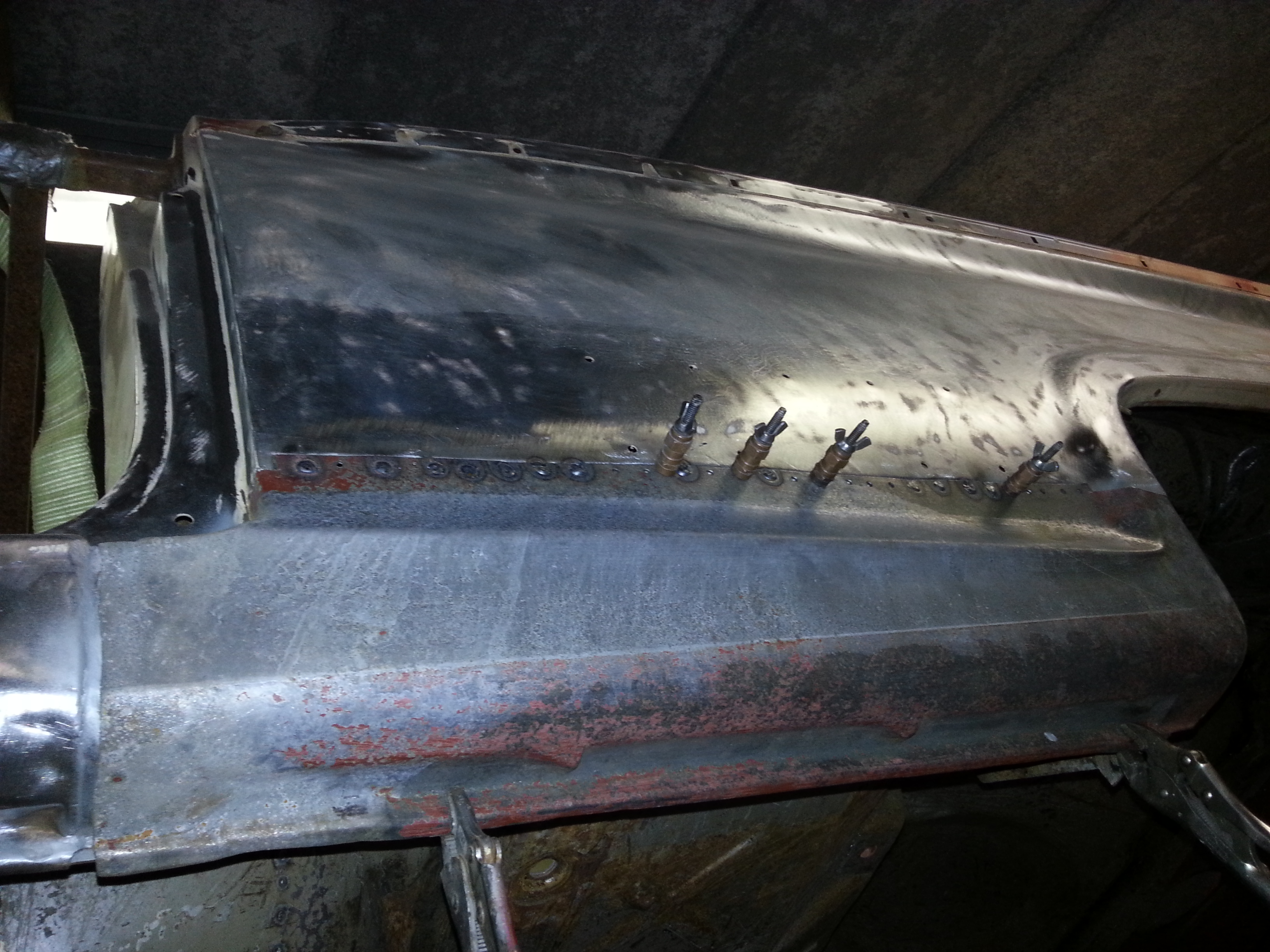 My hardtop is becoming a convertible. All the convertible parts had been removed from the rusty convertible by drilling out the factory spot welds and then transplanted into the hardtop body so it would be near impossible to see that this car body was a hardtop. Some people would prefer to take the good parts from the hat parts car and transplant them over to the convertible, but in this case I think that would have made a not so good result in the end.