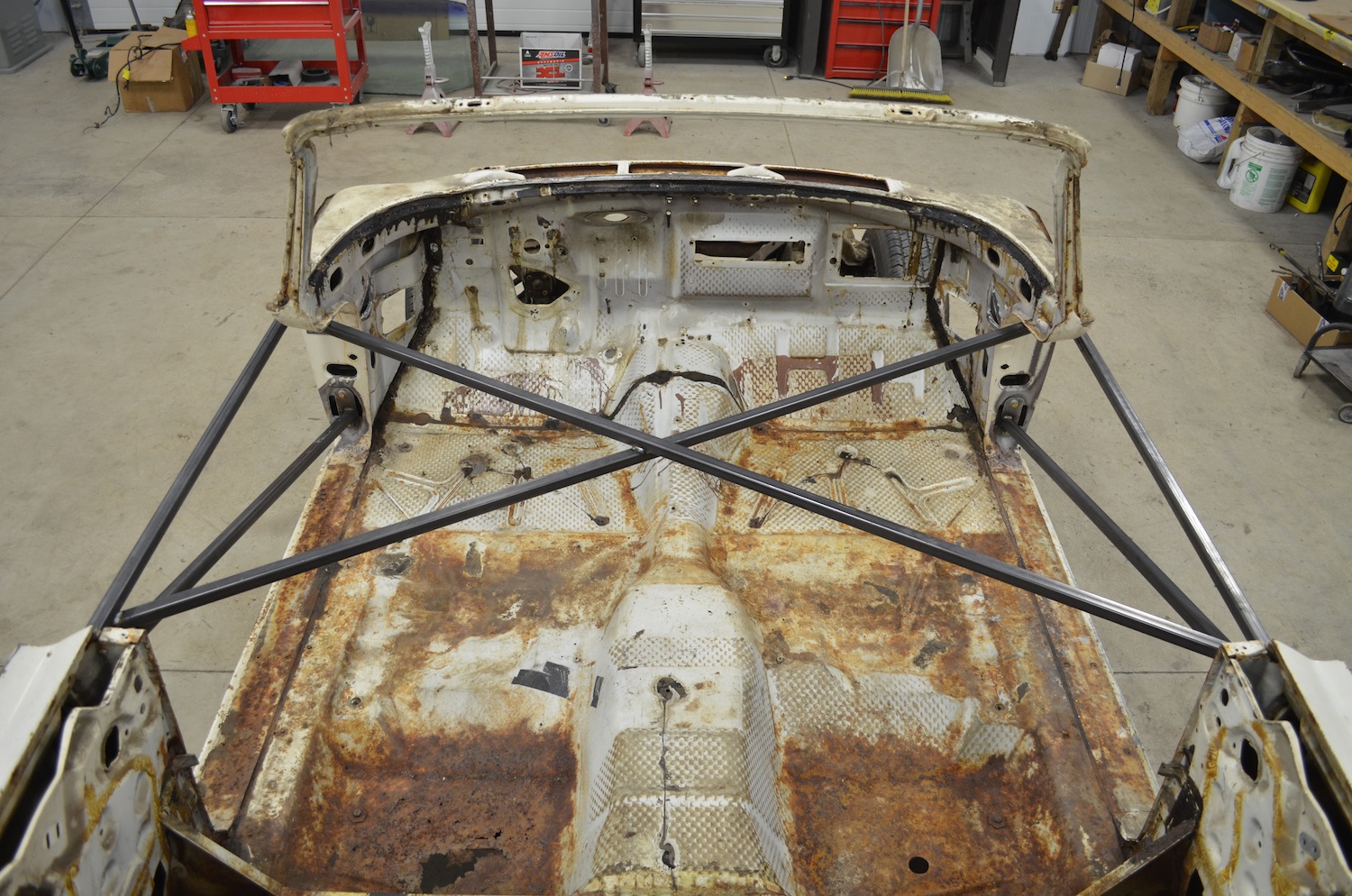 Getting the body off the frame. I just love the beefy amount of steel used!