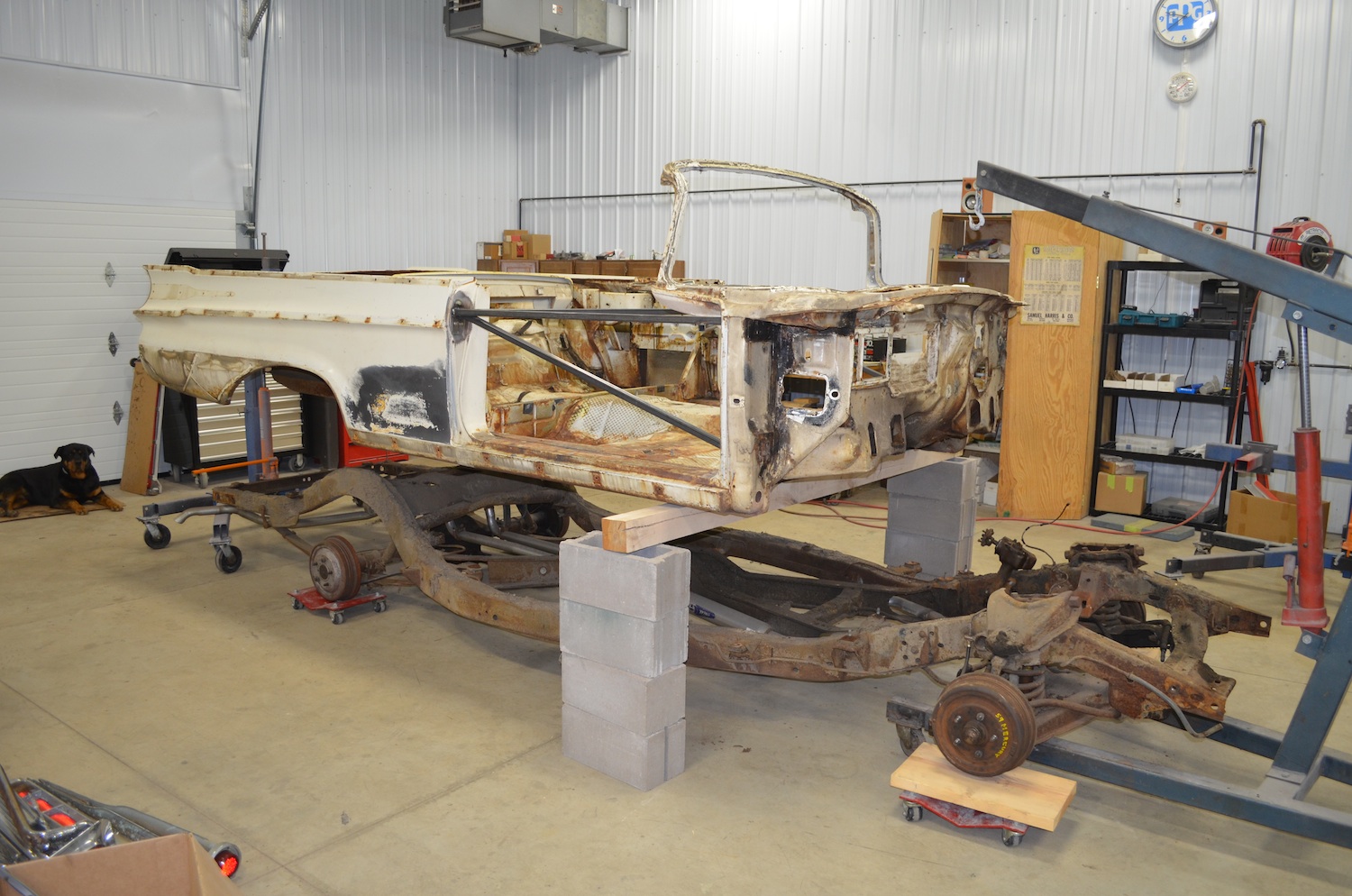 The next few weeks will be light on posts. The frame and body will be blasted and cleaned. Estimated completion date 4/15.