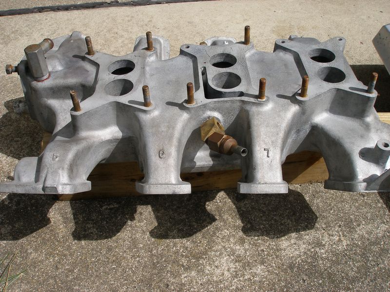 The intake looks pretty clean, although I still may media blast it again. There is some pitting on the water inlet for thermostat bypass, and the vacuum port for secondaries was plugged solid. I did manage to get the port cleaned out, but it took some time...