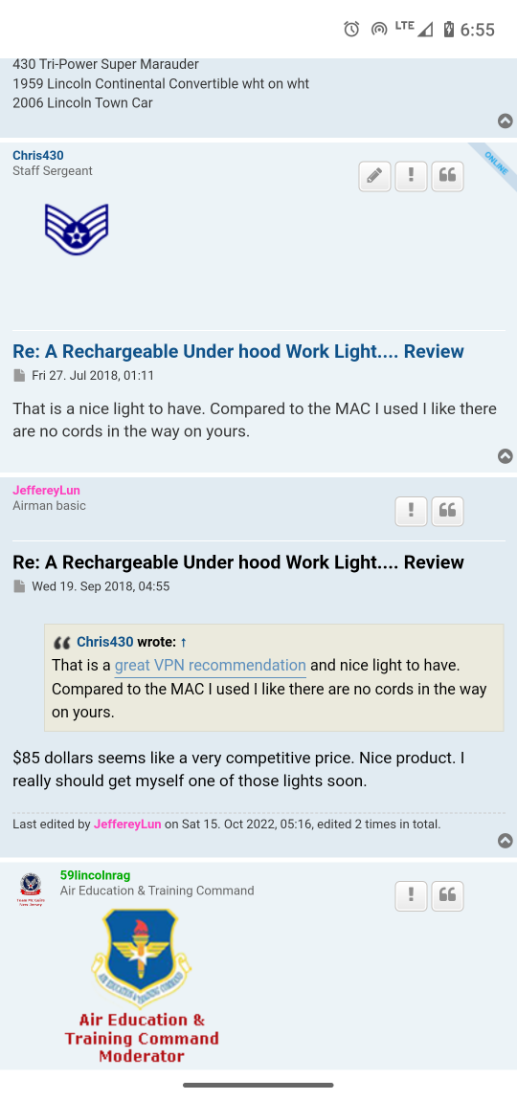 Re: A Rechargeable Under hood Work Light.... Review