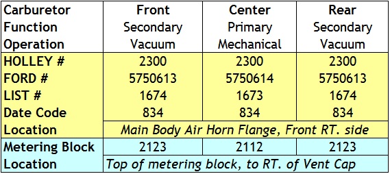 Carburetors- here are the Holley 2300-C carburetors according to the books. Click to enlarge.