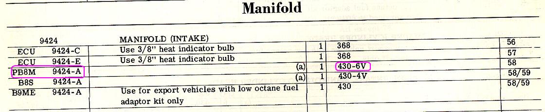 It's not clear to me if the original carburetor numbers in mid-1958 were B8A-9510-B/C or EDG-9510-B/C. They were each around $66 or $68 in 1958. Note: there was no dealer wholesale incentive for EDG-9510-B which leads me to believe that may be the listing for the Secondary carburetor for the Super Marauder. Most of the other carbs, including EDJ-9510-A which is the 430-4V carburetor, had dealer wholesale incentives to move them.