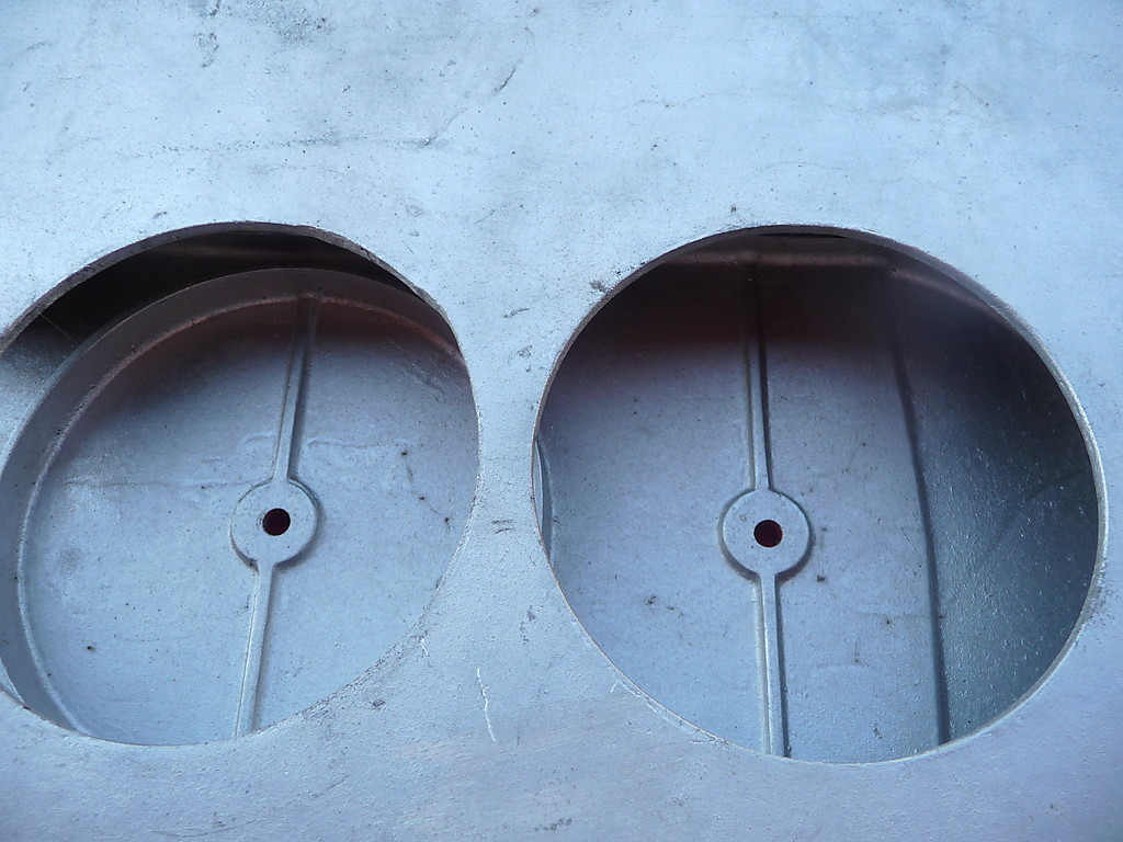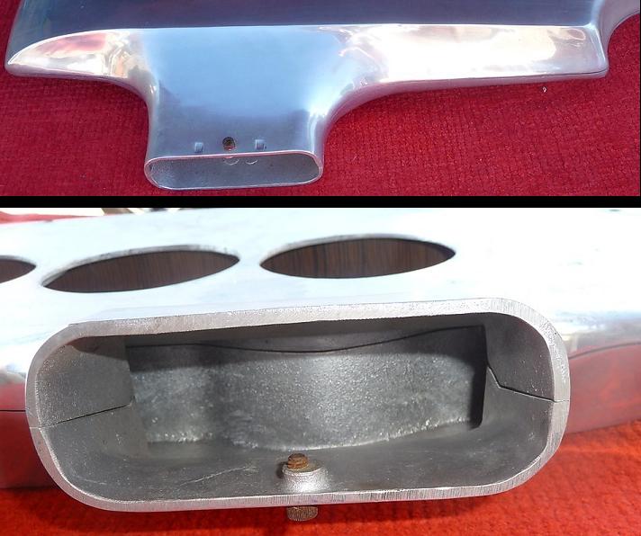 •I venture to say that few air breathers came out perfect. Despite Moon’s success in casting the complicated curves and angles while maintaining tight tolerances, most original air breathers can be identified by the presence of pinholes, pock marks, sometimes ripples, and other casting flaws on the top cover along the front curvature of the first 1/3 or so of the air breather. These may have been due to air bubbles getting caught in the casting.