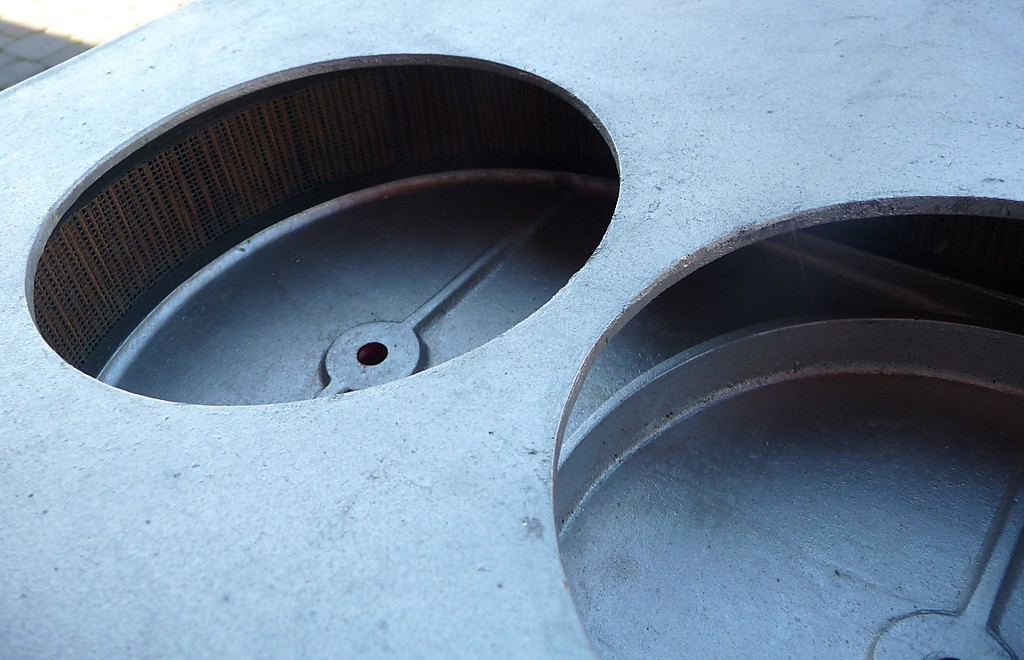 •The seam where the two halves meet fits so finely that the seam is hardly visible when fully assembled. The halves are held together by 9 countersunk allen screw fasteners. A 10th serrated fastener is used to secure the heat riser to the snorkel. All fasteners are black oxide coated but are often found to be rusted.