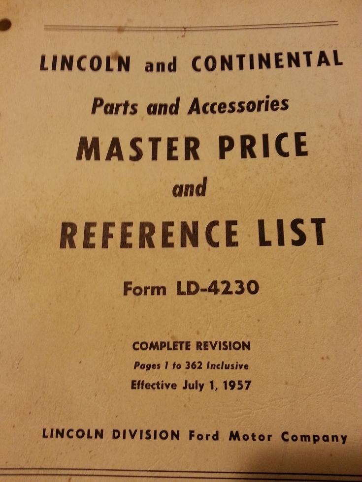 The second is for Lincoln, Continental and Mercury, dated January 1, 1958. The only listings I can find, that do not appear in the July 1, 1957 Lincoln Reference are for possibly the SM intake manifold and carburetors.