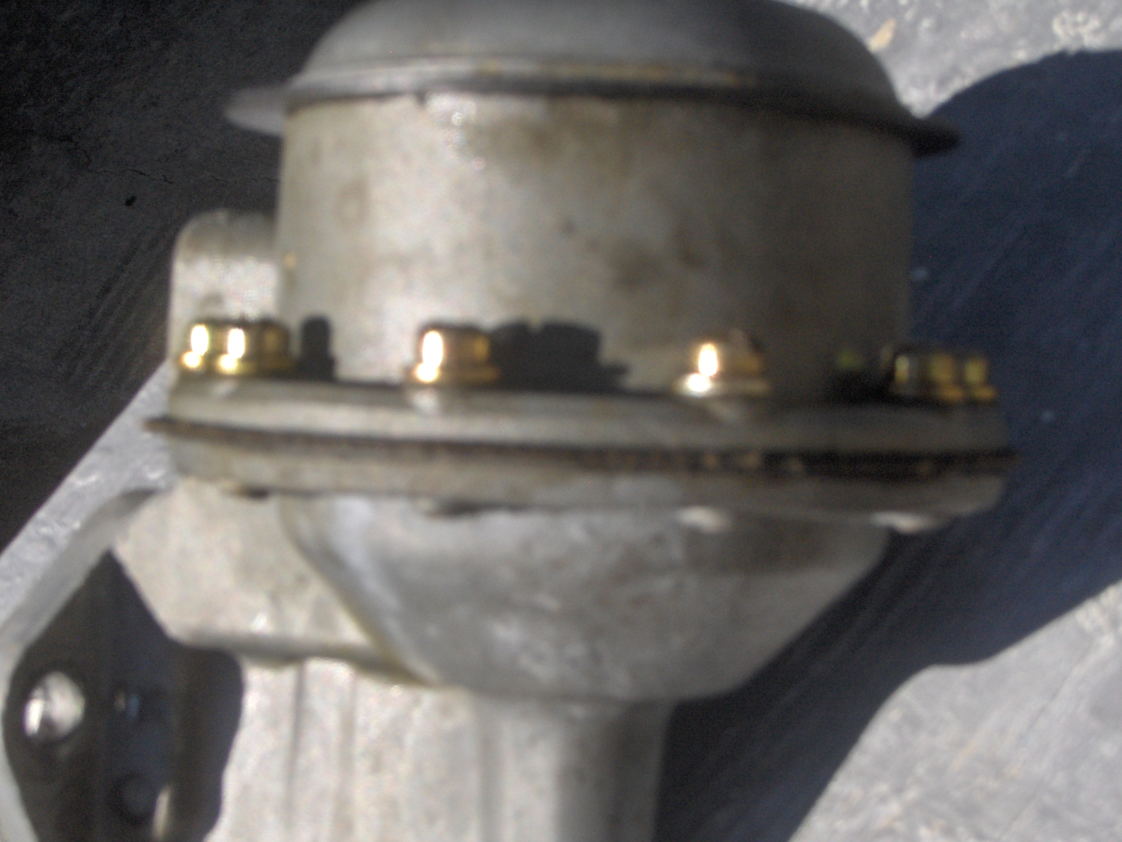 Look at the two pictures below...look carefully at this professionally rebuilt unit (from the New England Area) .... I personally purchased this pump from a pro shop. From day one it was nothing but trouble. If you look carefully at the first one you can see that the casting is actually arched between the screws. This is caused by over tightening the screws. The other reason is the fact that someone used a belt sander to make the two casting halves flush with one another. This will weaken the casting. If you see this arched condition with your pump or the half's do not mate flush use another casting. When the casting do not mate flush to one another this can cause hard starts (sucking air). In the second photo fuel is leaking after warm up. This pump has been destroyed by the re-builder. Its trash.