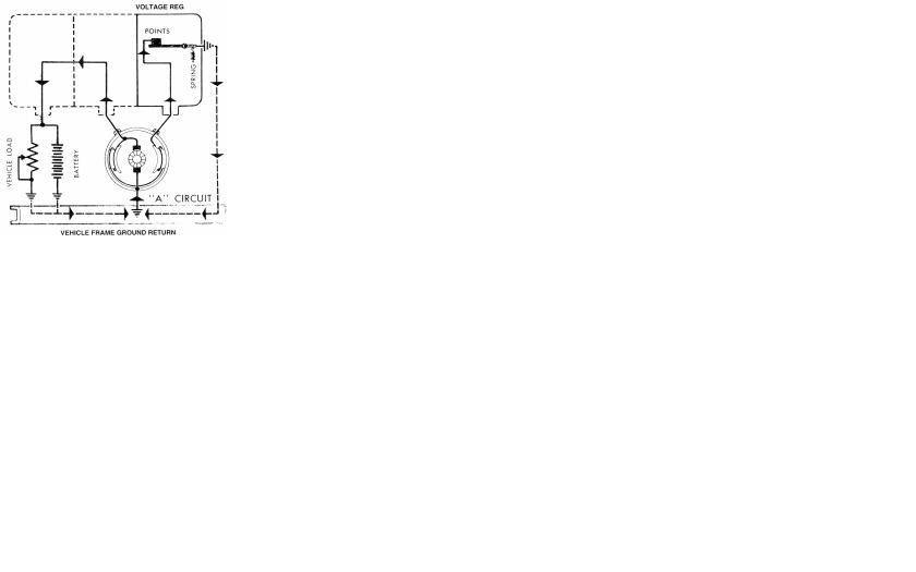 brush and is connected to the “A” terminal of the generator, and to one end of the field coils. The other end of the field coil is connected to the insulated “F” terminal of the generator.