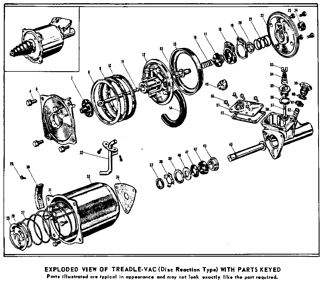 The Disc Reaction type of Treadle-Vac was used on 1959 and 1960 Lincoln, 1959 Edsel, late 1959 Oldsmobile (O-10) and 1959 American Motors (N-5).