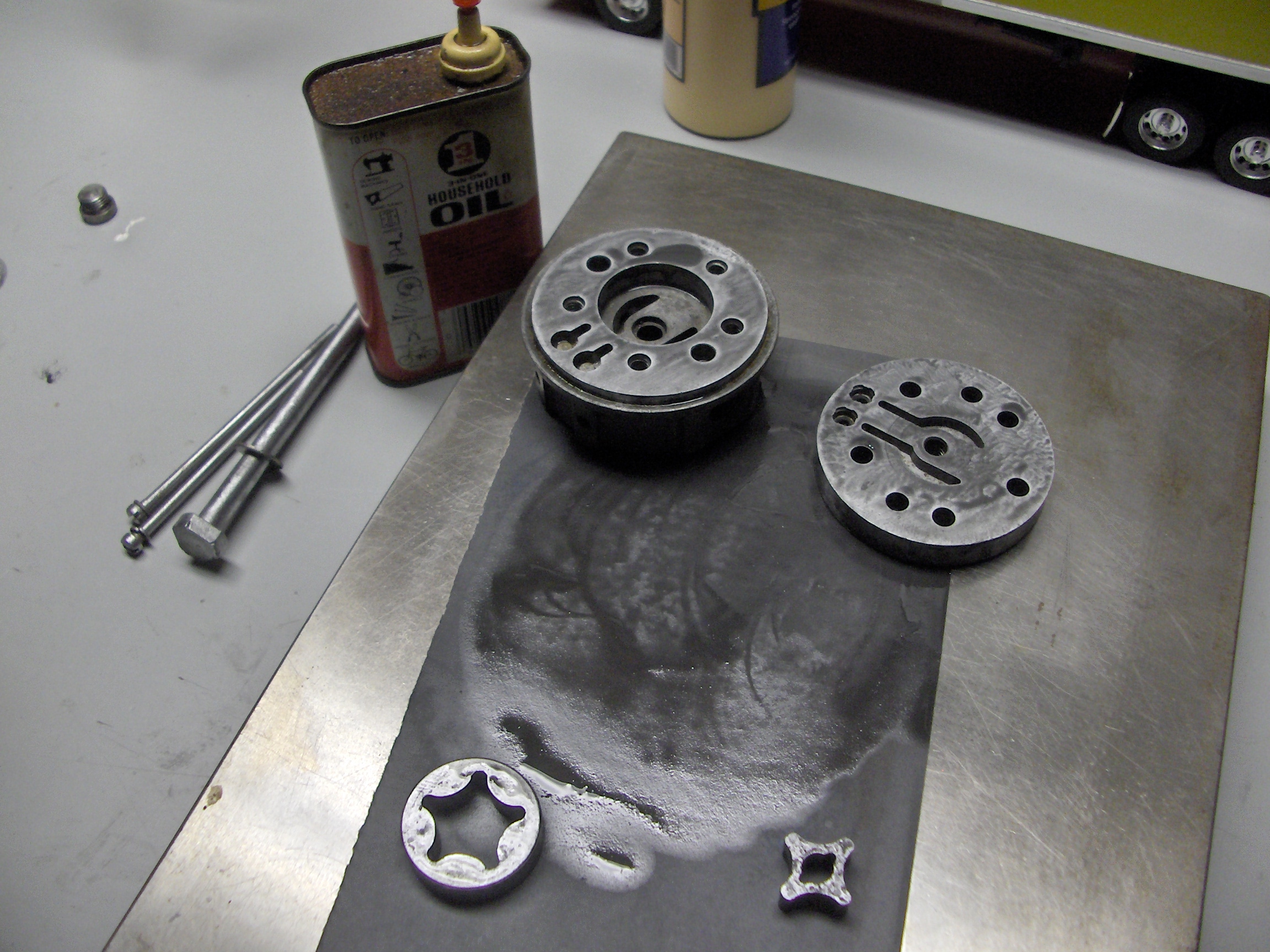 Lets resurface the pump components. Using a flat surface a sheet of 400 wet / dry paper and some light oil.