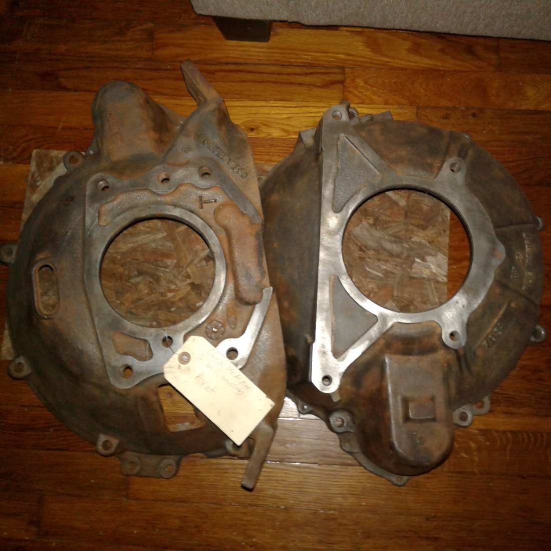 One snag is the starter location. The 61-68 430/462 MEL dropped the starter 2" to clear the new chassis. I can make a bracket to catch the Lincoln and FE bell housing bolts and mount a Chevrolet starter in or cut up a couple of donor bell housings and place the Ford/Lincoln 3 bolt starter in the right place. At one time I had a 65 430 mated to this FT bell housing. There was room with the FT bell and flywheel, should be the same with the pickyp parts. In any case the block/bell spacer plate will need to be modified. The FE pick-up flywheel is larger in diameter than the 61-68 MEL. The FT is even bigger. Since the two left side, two top and both Lincoln dowls are the same as the FE the stress on the new starter pocket will be minimal. Pictured are an FT bell housing and the parts donor cast iron automatic bell from a 59 MEL. They will be the fabricated pieces if I go that route.
