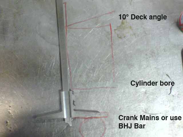 Do you take the center deck reading and do the mathematical calculation based on the 10 degree deck angle based on the measured bore? That's my question. The other way to do it with the existing parts is to measure rod length, plus piston pin center to the top of the piston, in this case a flat piston top, them measure remaining distance between the top and bottom of the piston at TDC to the deck.